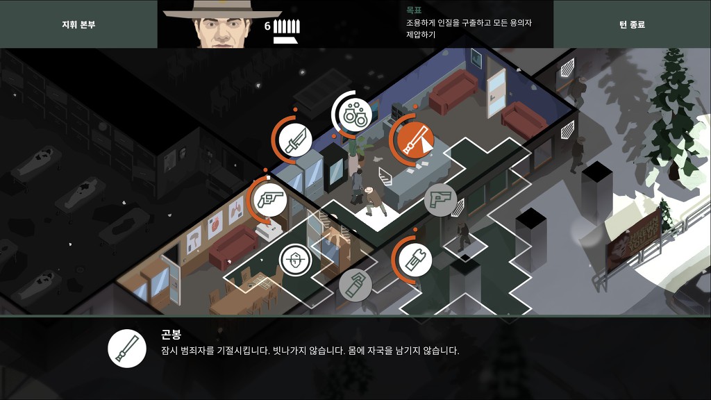 경찰관의 실력이 출중하거나(강제체포 스킬), 여러 도구로 기절 또는 부상시키면 체포확률이 올라갑니다.