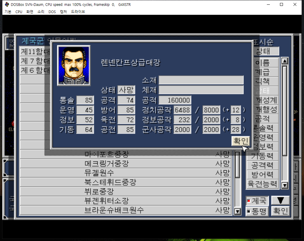 나름 제국군을 지탱하는 경험 많은 렌넨캄프 제독이 전사했다는 소식이 들려옵니다.
