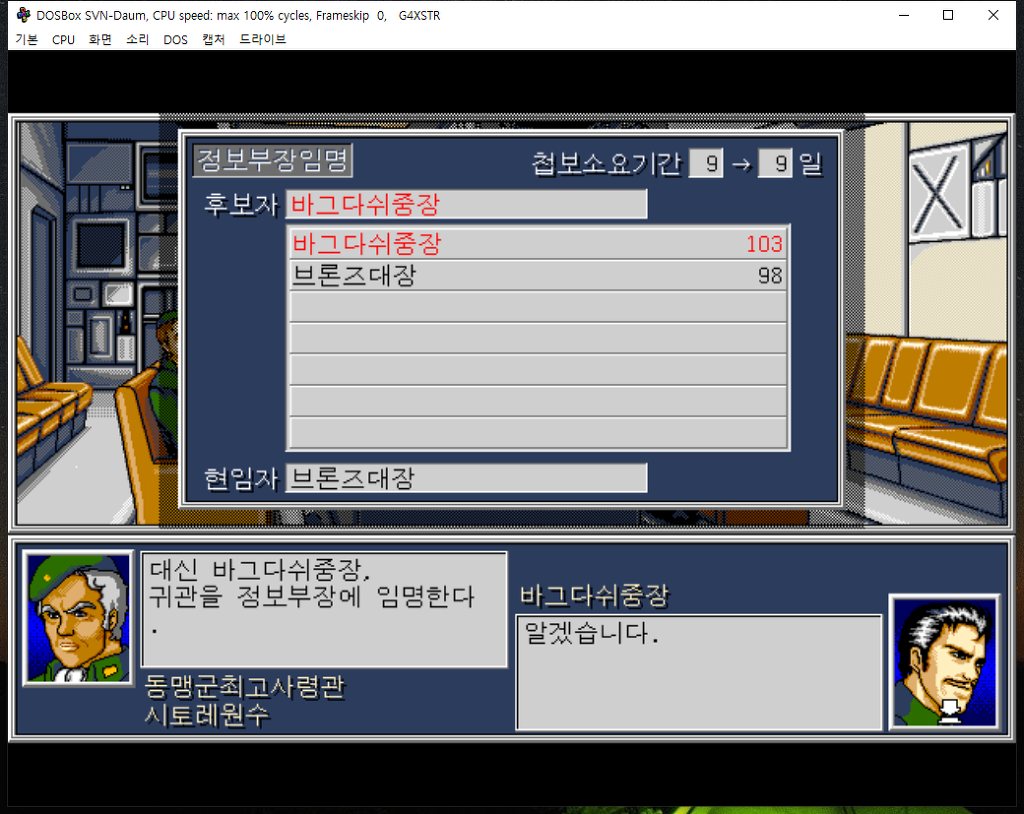 잠깐의 유예기간을 거친 첩보부장 직은 다시 바그다쉬 중장에게 돌아왔습니다.