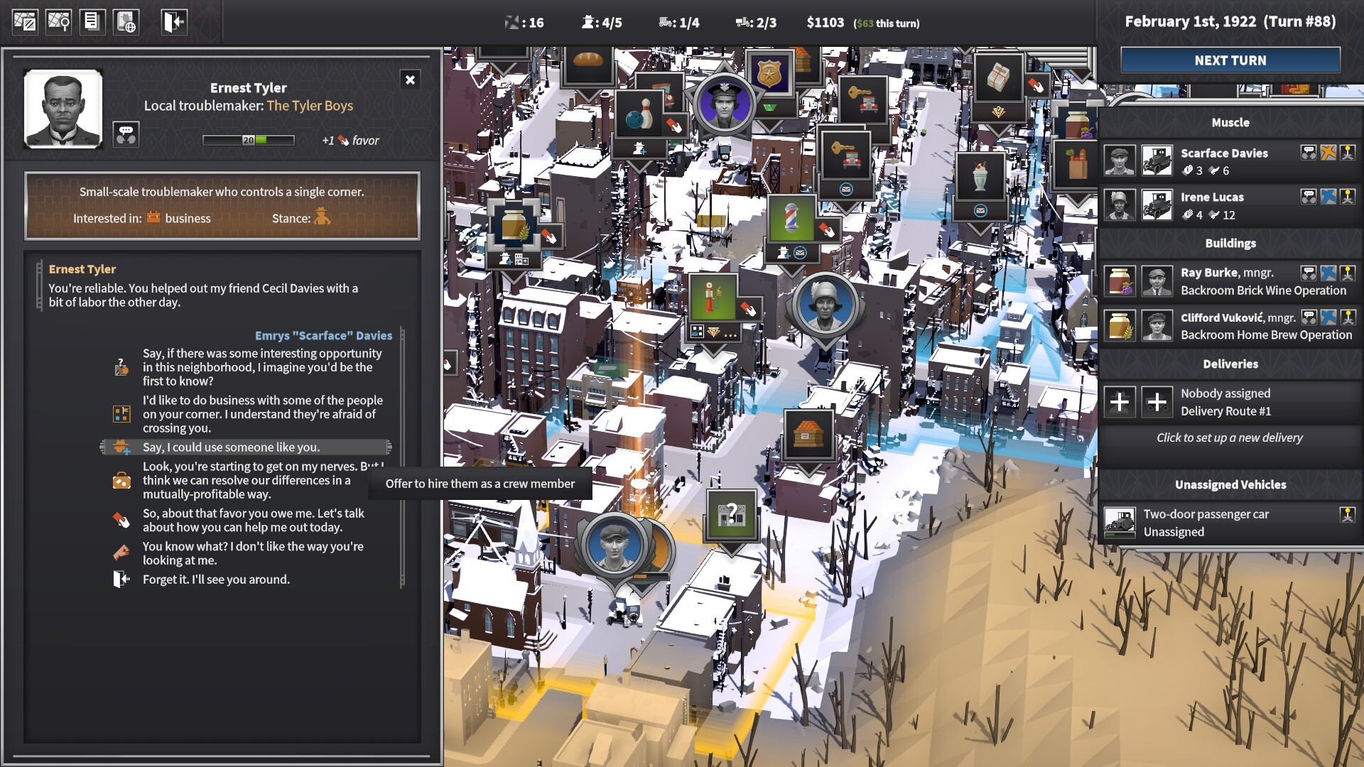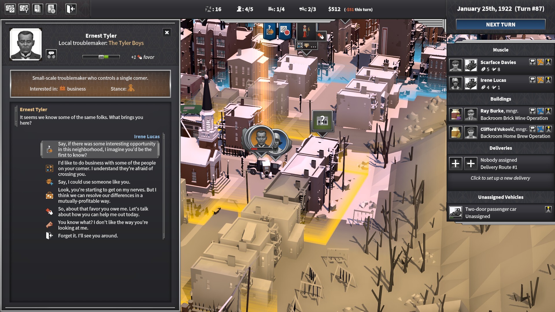 로컬 트러블메이커들(중립세력)은 코너 하나를 차지한 상태에 그 코너를 중심으로 주변과 상호 작용합니다.