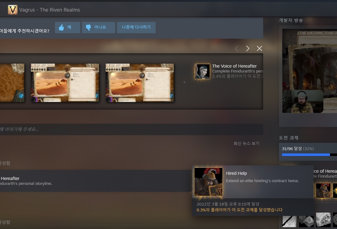 별건 아니고 유명 무역 가문중 하나(House Venari)에서 가장 비싼 용병을 산 후 계약 연장 하면 깨는 퀘스트인데,