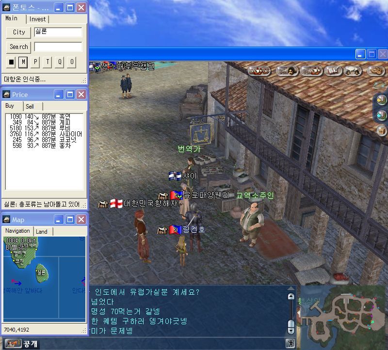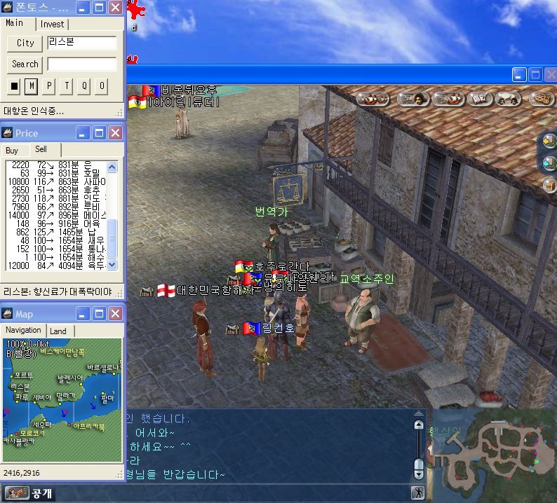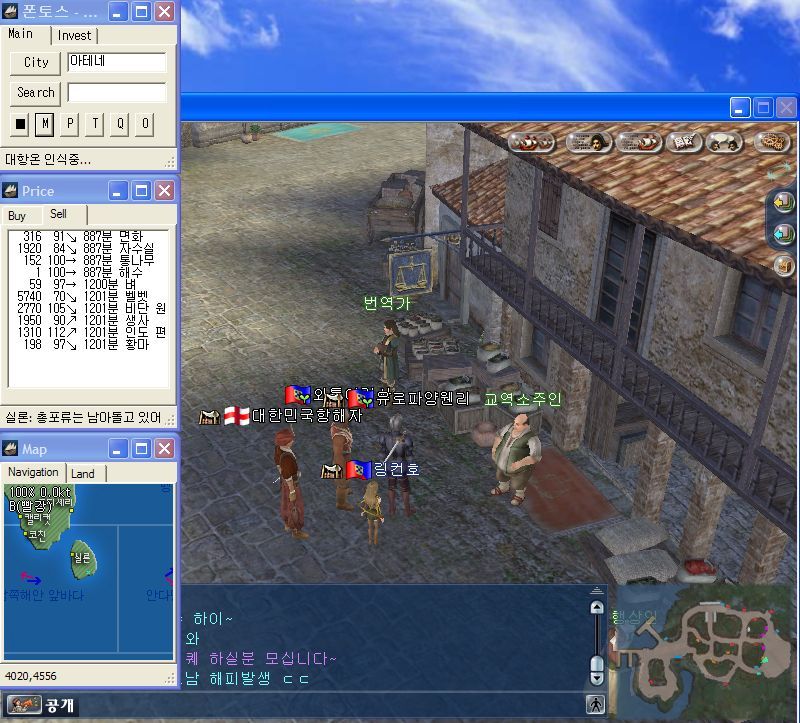서버접속에 성공하셧으면 지도상에 알고싶으신 교역시세정보를 클릭하면 지도는 자동이동하고 음...아테네는 현재