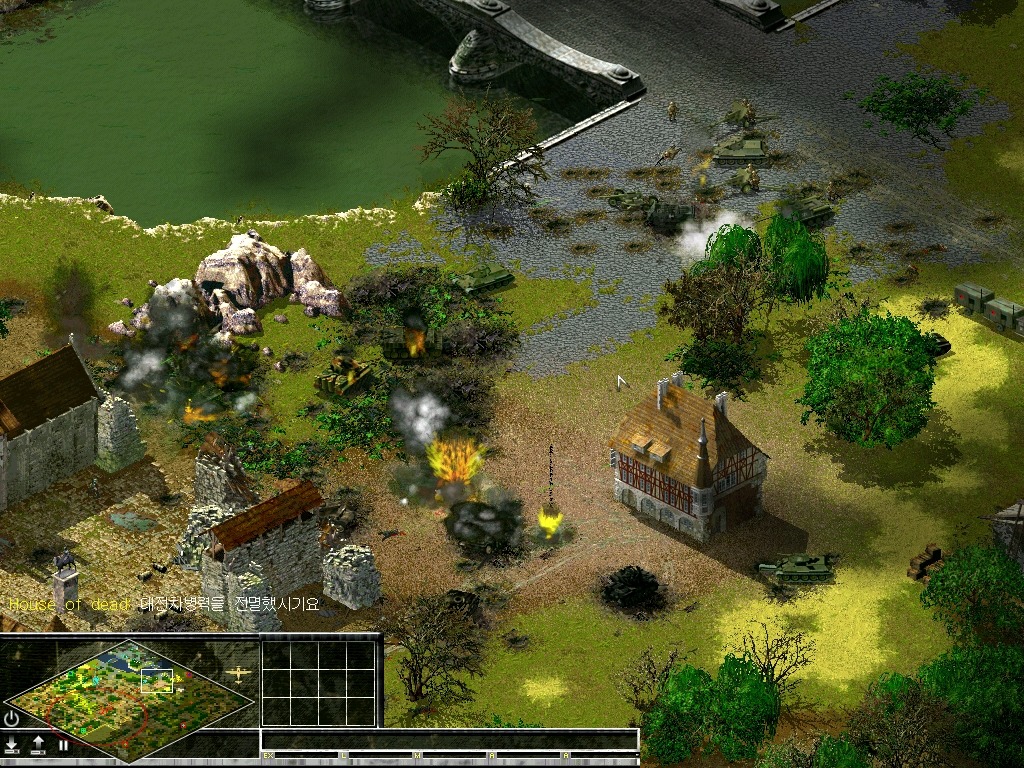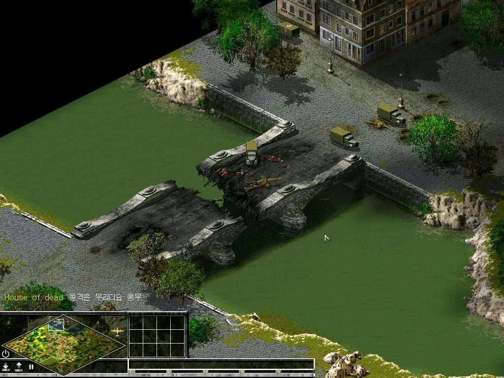 그래서 어이없이 내주고 말았습니다만, 우선 적이 건너 내려오지 못하게 교량을 폭파시켜놨습니다.