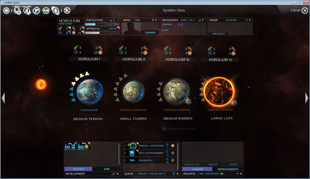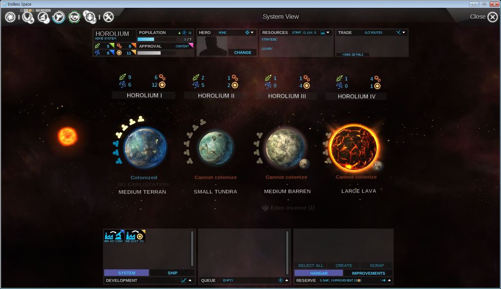 1단계 : 테란, 정글, 오션 = 식민화하는데 연구가 필요없고 행성 크기에 비해 인구가 아주 많이들어가며 지지도 패널티가 없음, 인구당 생산능력 총합이 아주 높음.