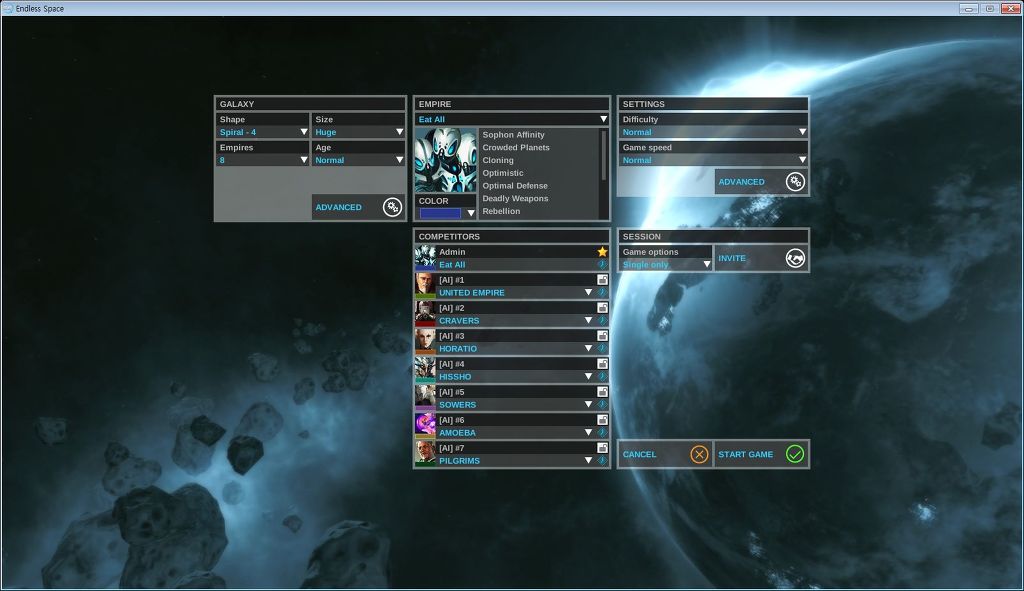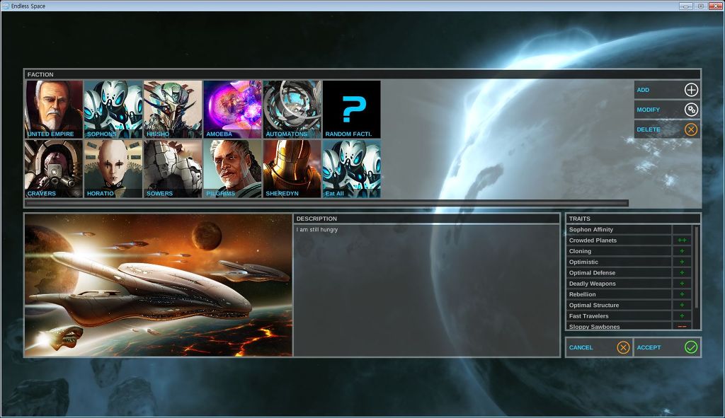 엔드리스 스페이스에서는 제국 포인트에 약간의 패널티를 받고 자유롭게 분배하여 문명을 만들 수 있죠.