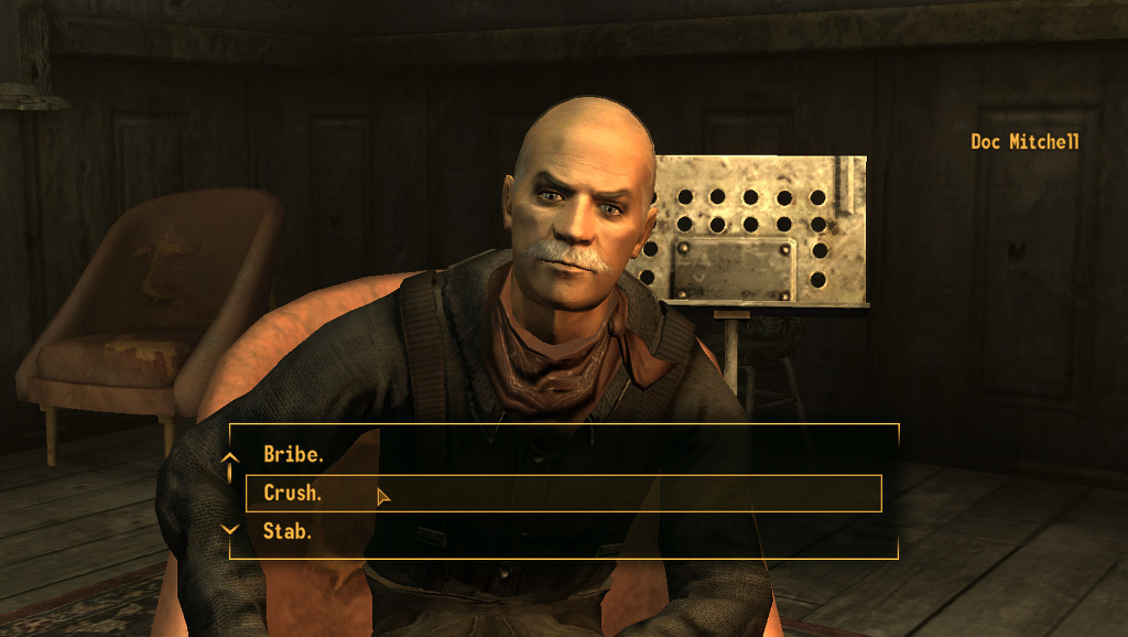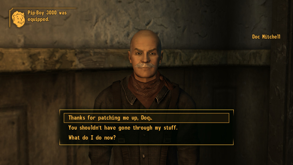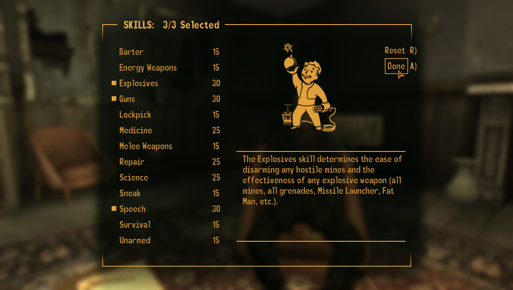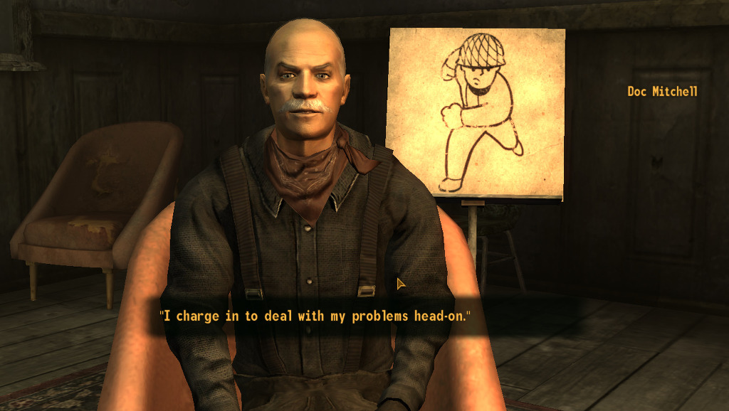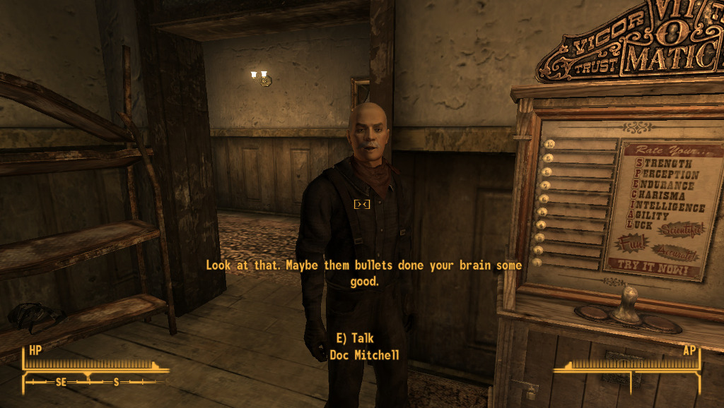 근데 뉴베가스는 폴3에 비하면 상당히 쉬우므로 뭘 택해도 되긴 합니다만. 저는 맨 처음 퀘스트인 ghost town gunfight 퀘에서 스킬에 따른 경험치를 최대화 하기 위하여 이 퀘에 맞는 스킬로 설정 하였습니다.