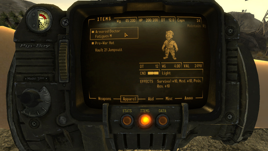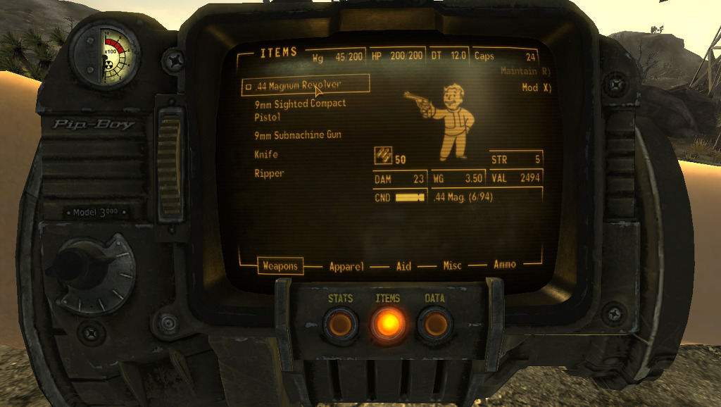 [가기전에 이것을 받고 가세요. 핍보이라고 볼트에서 볼트 주민들에게 주던 하이테크 기술임. 앞으로 Tab키 누르면 뜰겁니다. 원래 아내껀데 아내는 볼트 나와서 금방 죽었어요 엉엉]