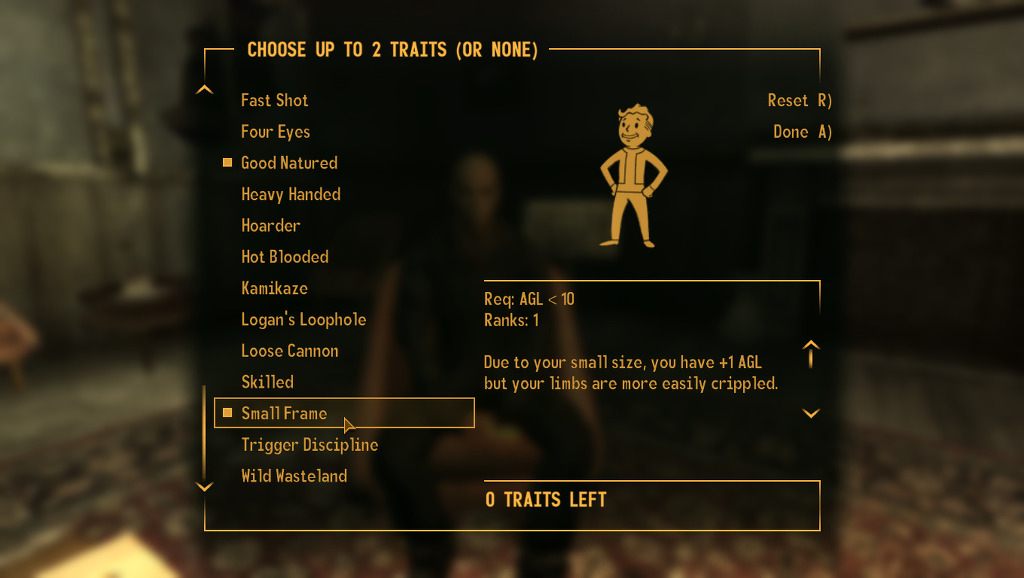 ....원래는 하드코어모드라면 저 small frame이라는 트레잇은 정말 극악의 선택입니다만 전 하드코어 할 생각이 없으므로.