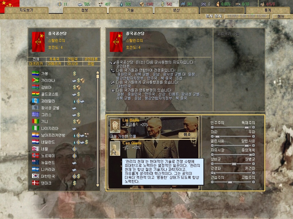 ...만약 자원 상태만 좋았다면 단 1초의 망설임도 없이 IC+10% 버프의 관리의 천재 카오 큐우루(맞나?)를 군수장관에 임명했을 것입니다.