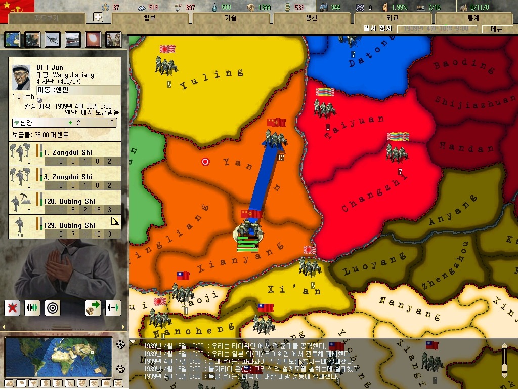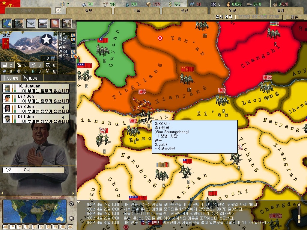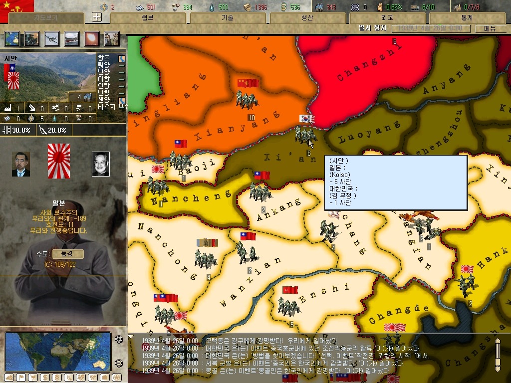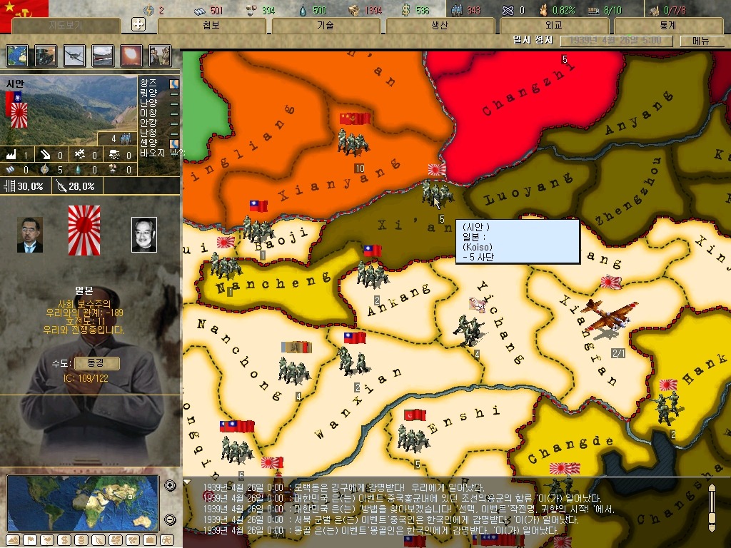 하여간 시안에 착륙(?)한 대한광복군. 근데 시안은 일본 점령지. 그리고 호이상에서 원래 있던 병력 위로 병력이 소한되면??
