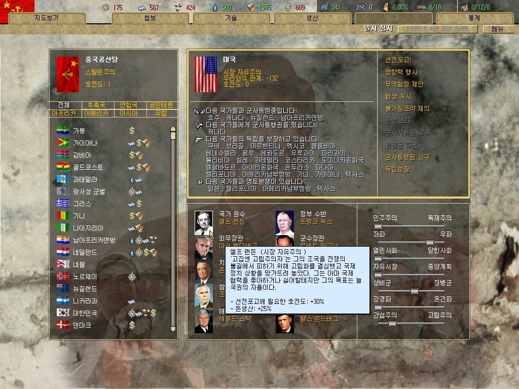 .....돼지머리 고립주의자 아니였나? 하여간 이분 덕에(?) 미국은 패왕의 길로 들어서지는 않고 있습니다. 아메리카 통일하겠다고 전쟁 일으키지도 않구요. 하여간 메테다시 메테다시. 물론 유대인들에게는 눈물 ㅠㅠ겠지만 알게 뭡니까(야) 어차피 게임인 데다가 스위스로 망명가서 살면 되죠(그만)