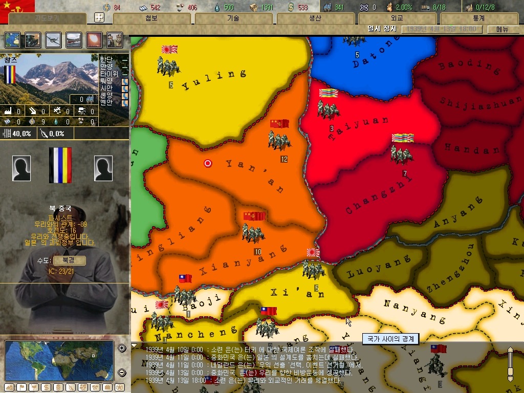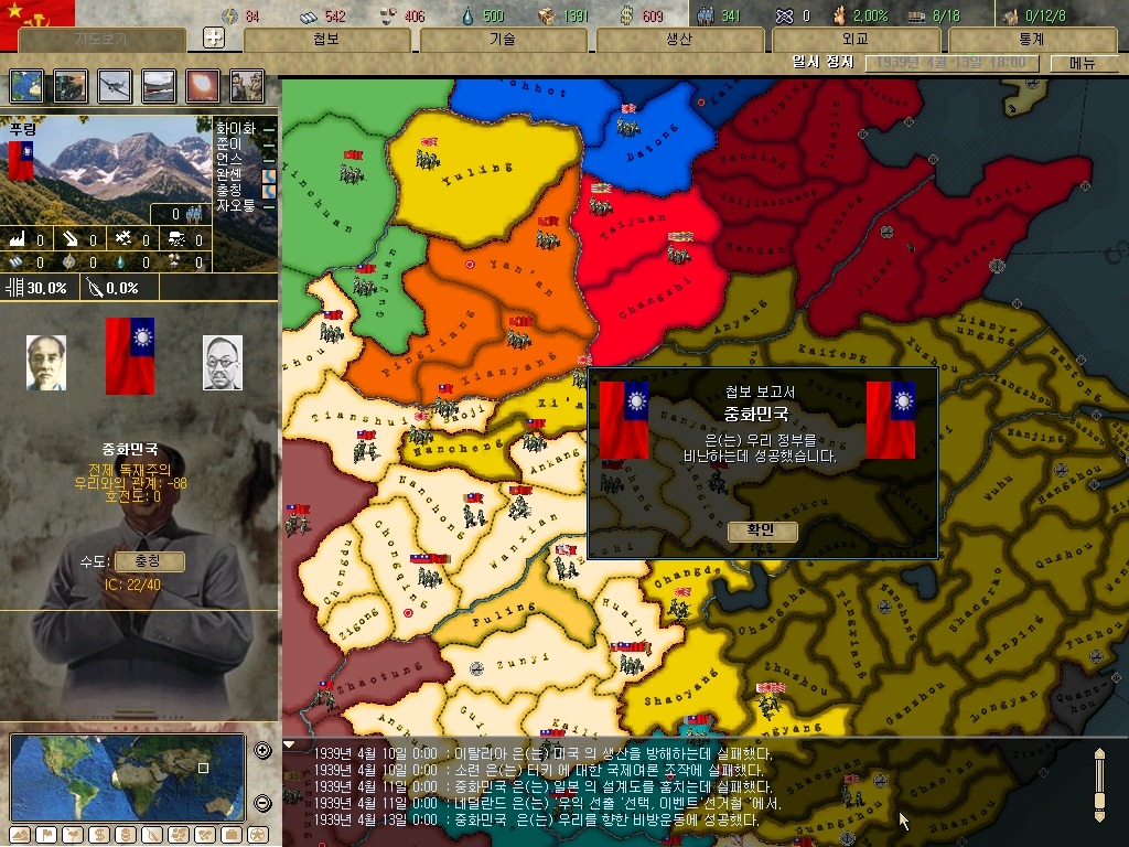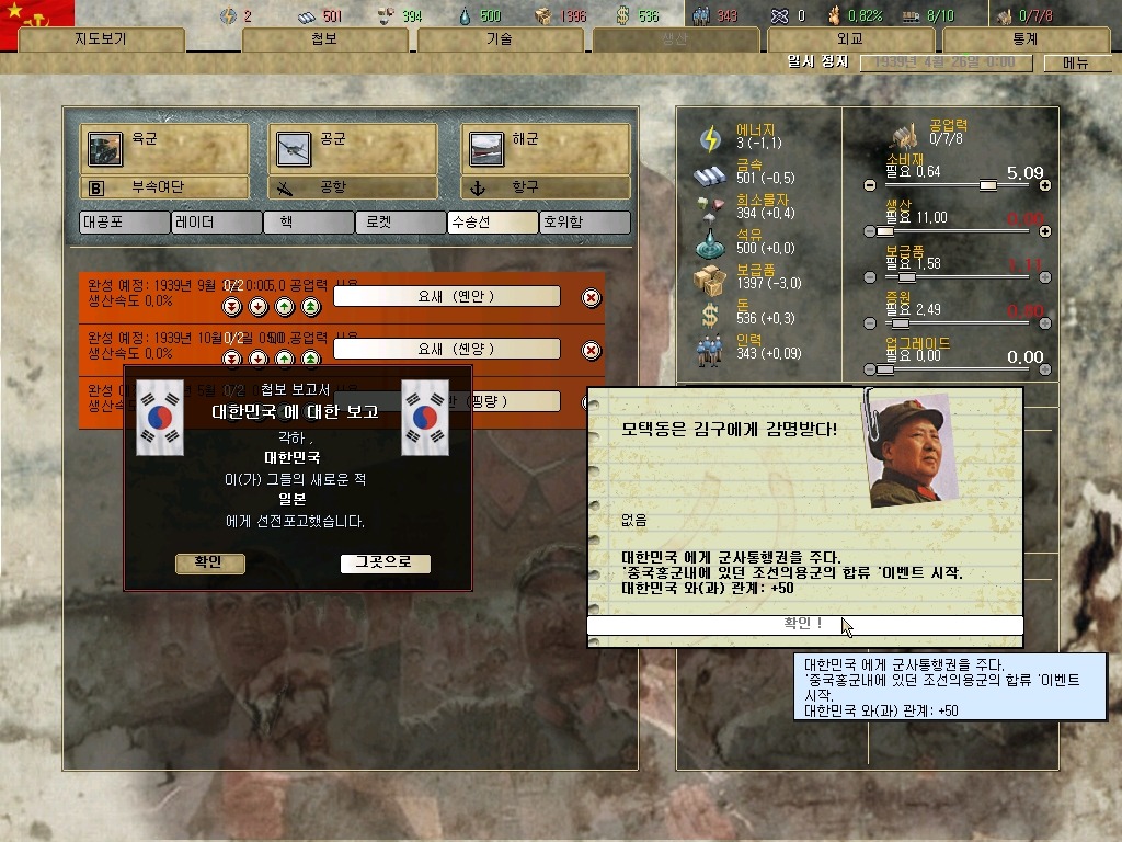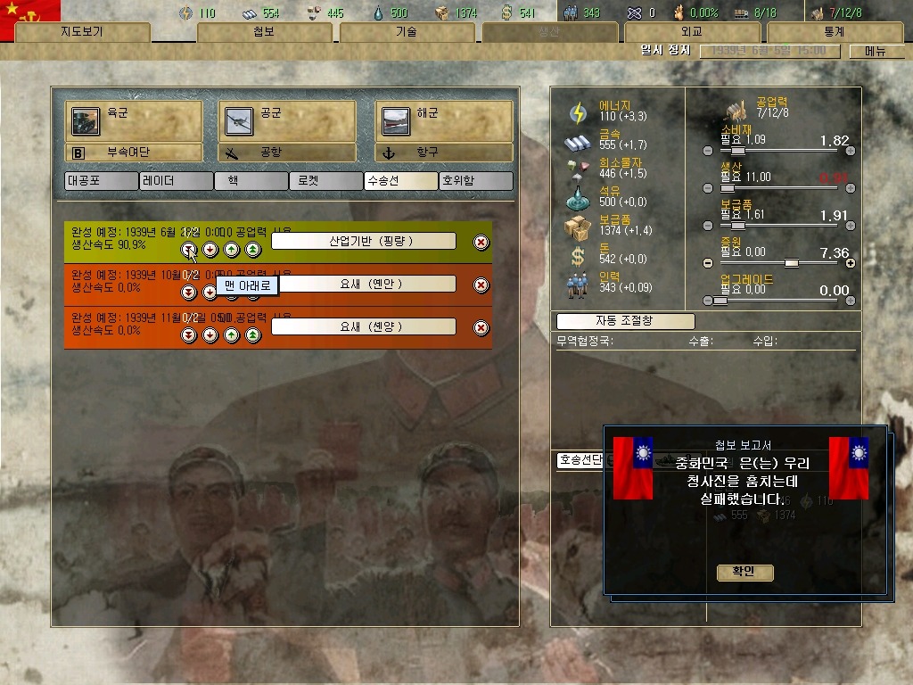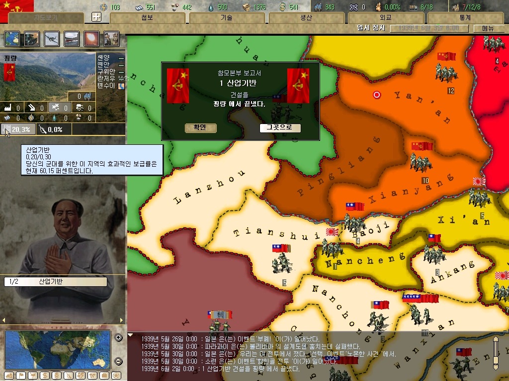 장개석 이놈은 질리도록 첩보질을 거는군요. 하여간 지금은 전시입니다. 그깟 인프라(?)보다 요새가 더 중요합니다. 물론 지금 모든 IC를 쏟아부어도 최소 한달은 걸리는 게 요새 건설이라는 건 넘어갑시다.