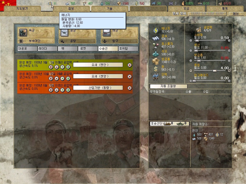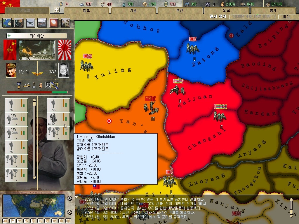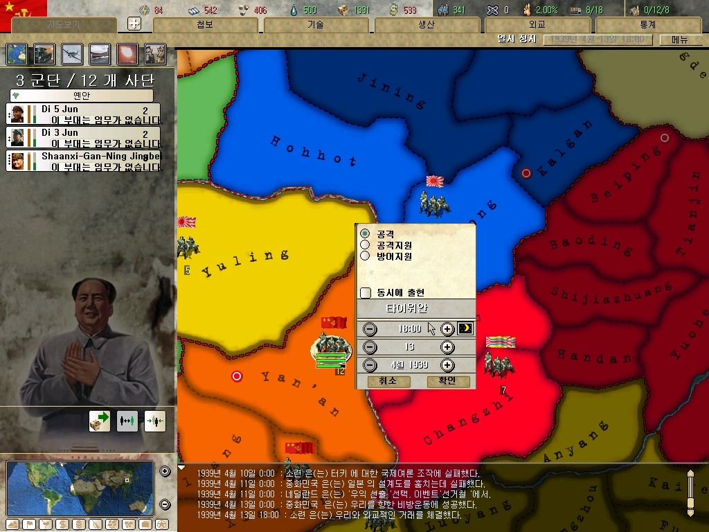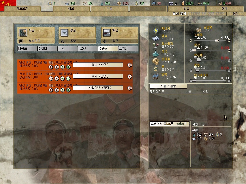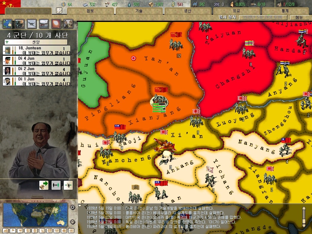 장개석 이놈은 질리도록 첩보질을 거는군요. 하여간 지금은 전시입니다. 그깟 인프라(?)보다 요새가 더 중요합니다. 물론 지금 모든 IC를 쏟아부어도 최소 한달은 걸리는 게 요새 건설이라는 건 넘어갑시다.