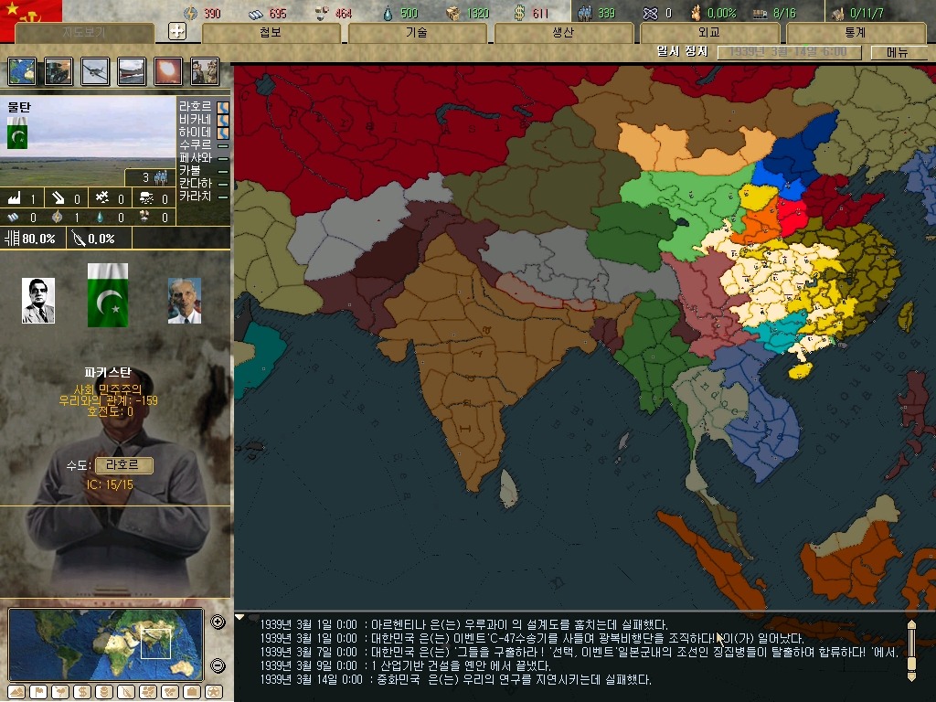 고자공장 만드는데 신경쓰느라 신경 못쓴 파키스칸입니다. 실제 역사보다 조금 낫군요.