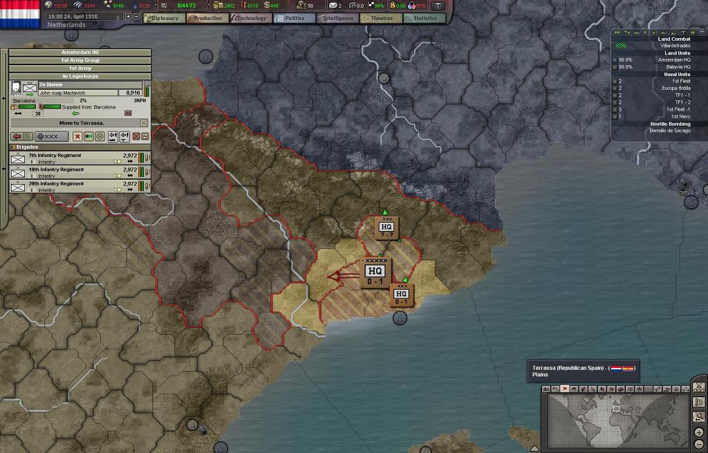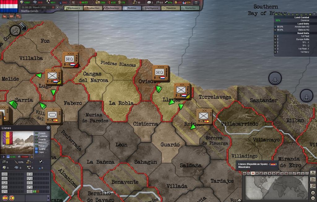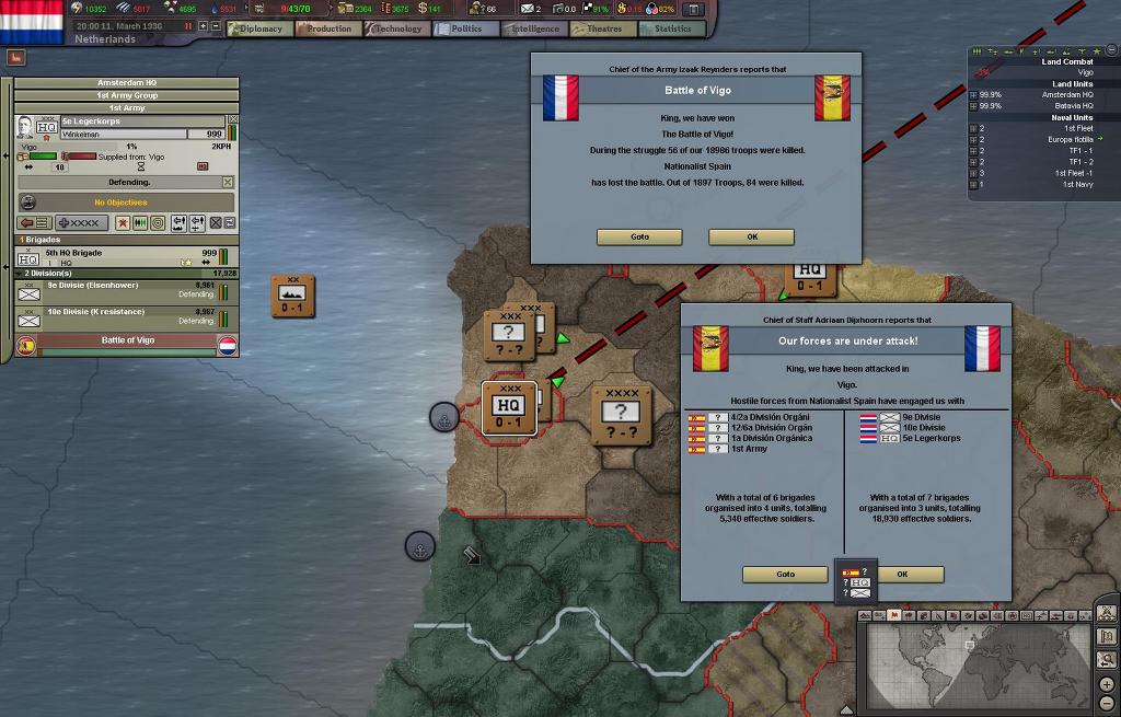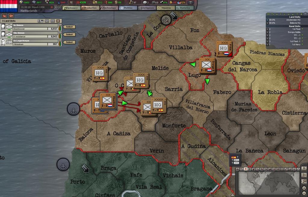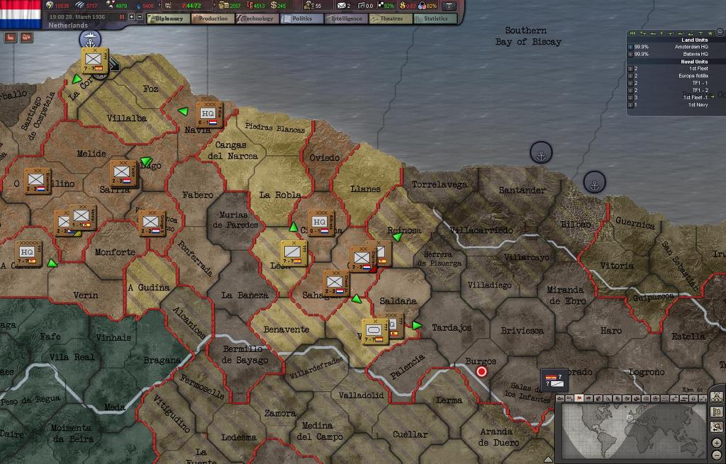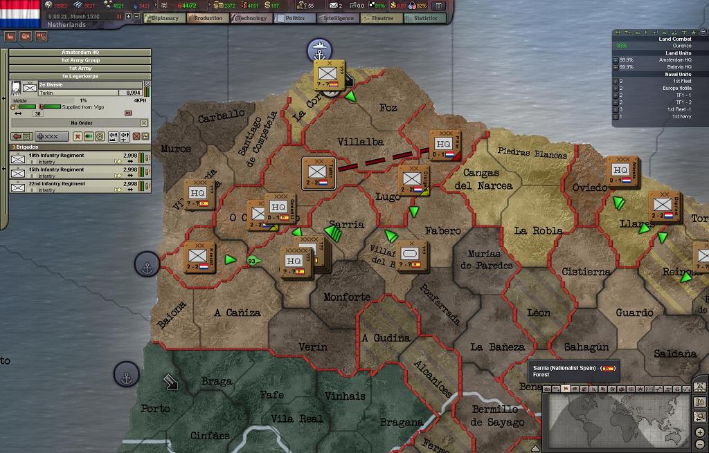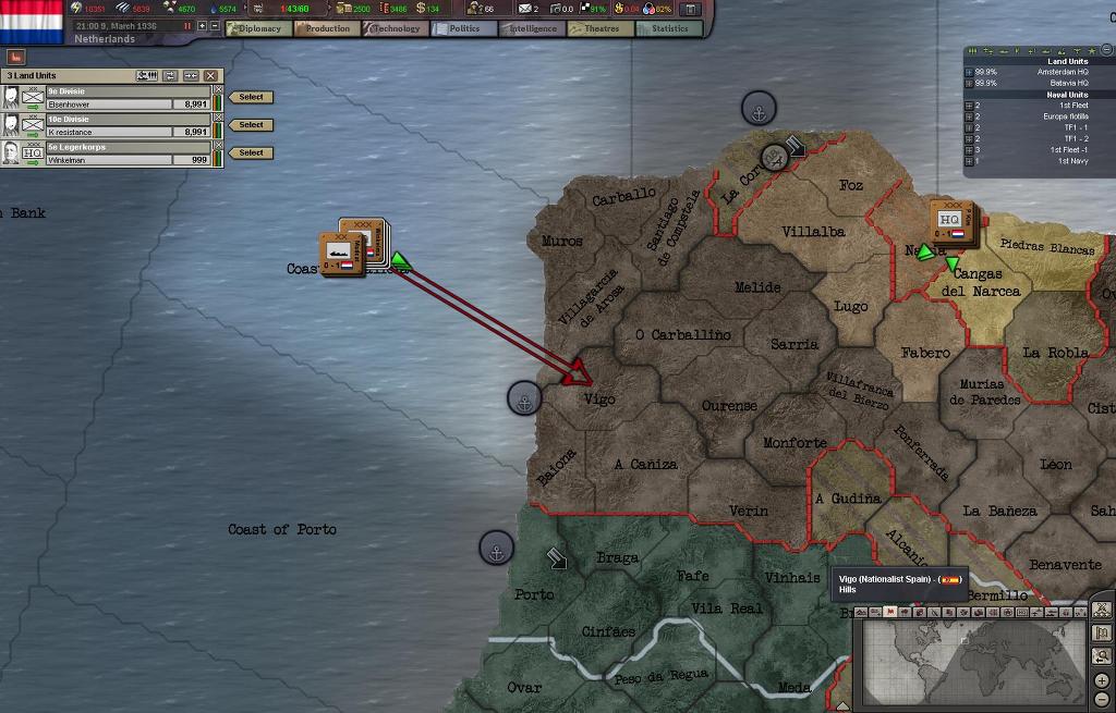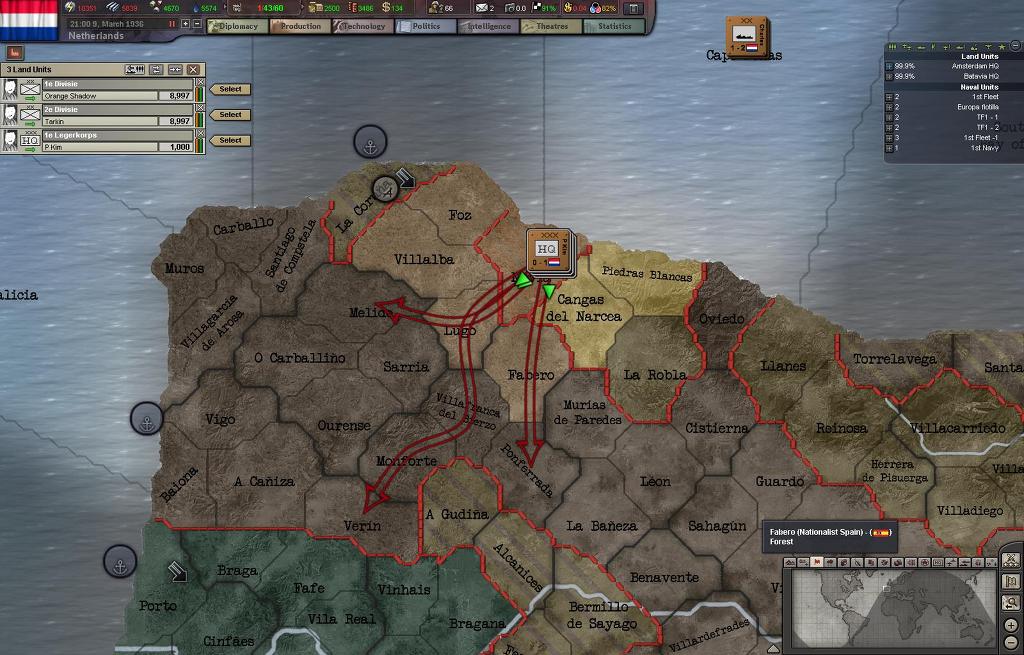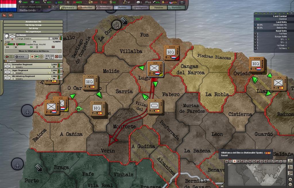 프랑코군의 퇴로를 차단위해서 네덜란드 1군단이 우선적으로 상륙하여 이베리아 북부해안에 상륙했고