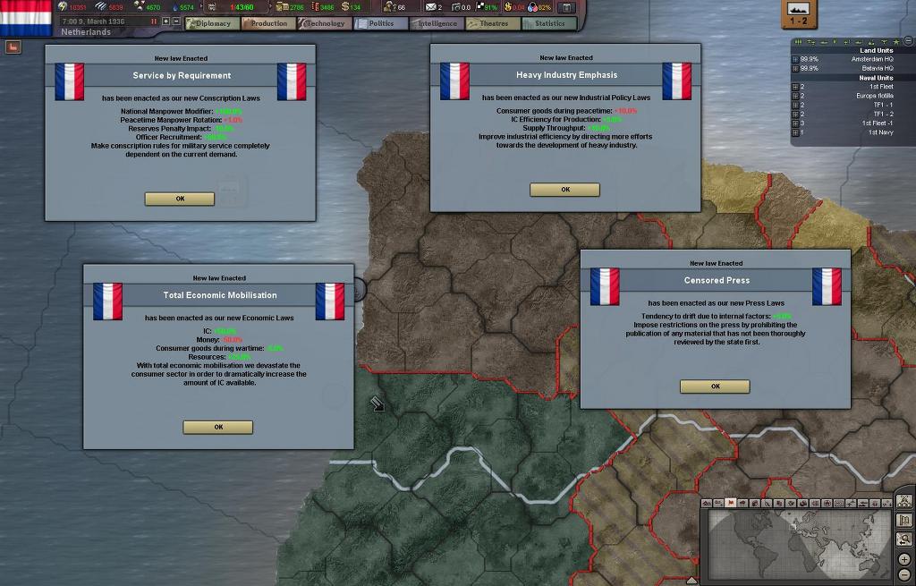 네덜란드는 프랑코에게 선전포고함과 동시에 대대적으로 법규가 변경되어