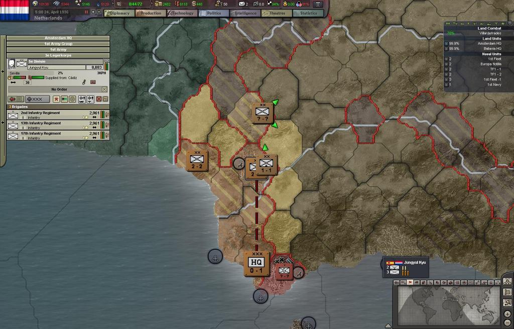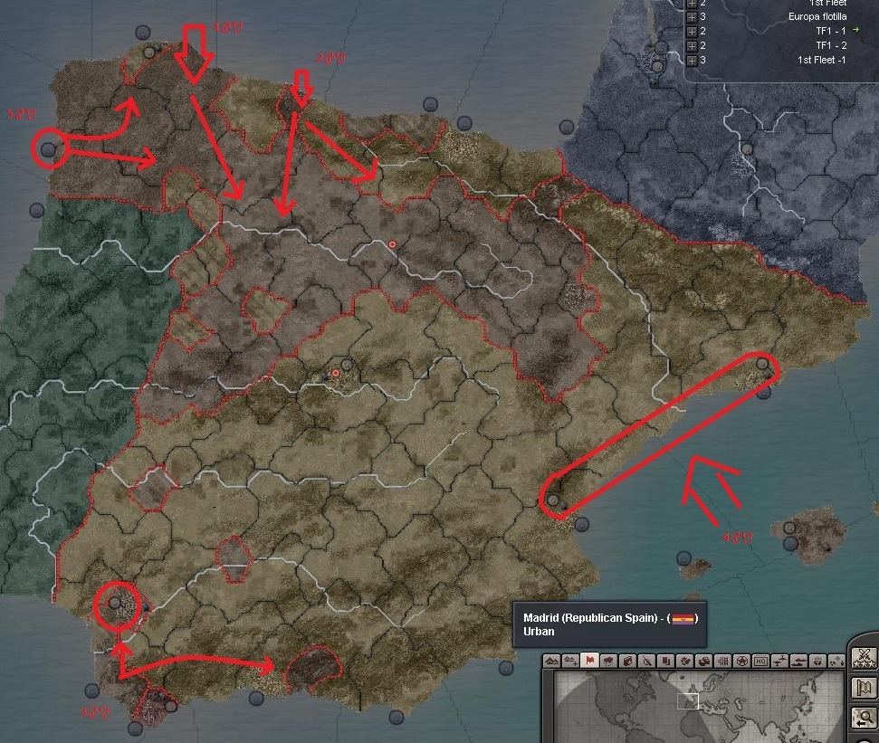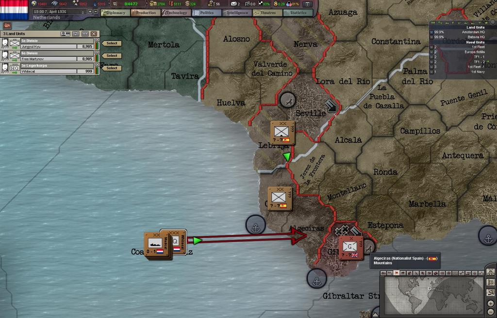 3군단과 1함대는 세비야 지역을 공략하기 위해서 지중해 입구로 이동한다.