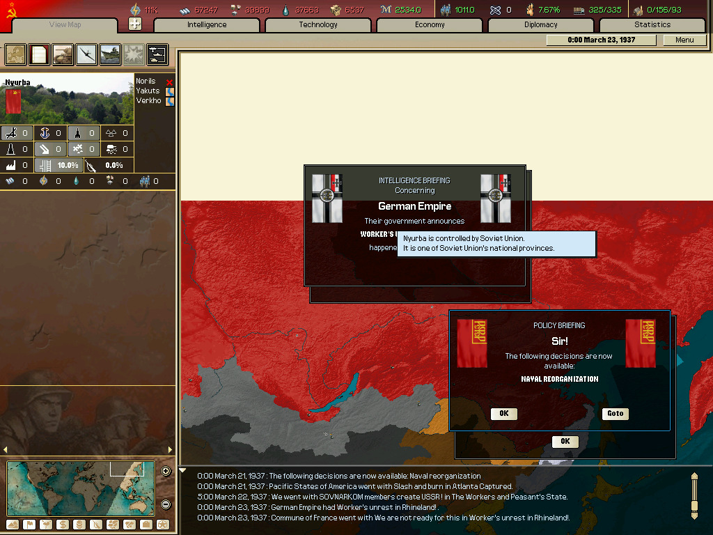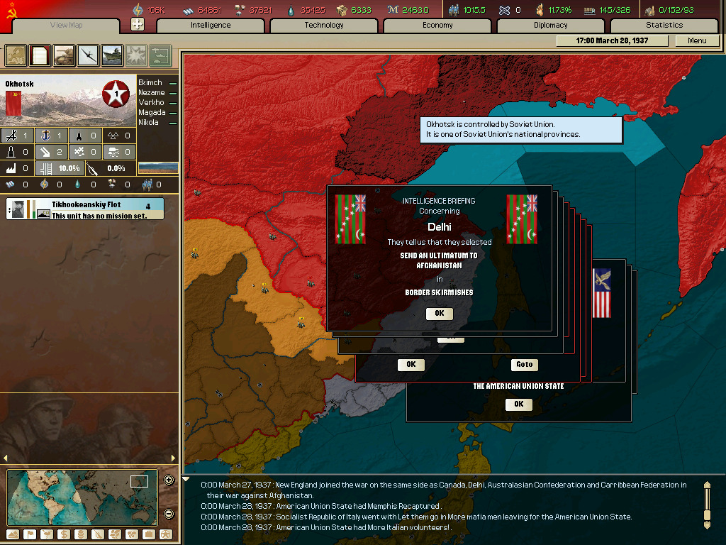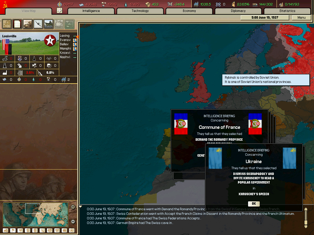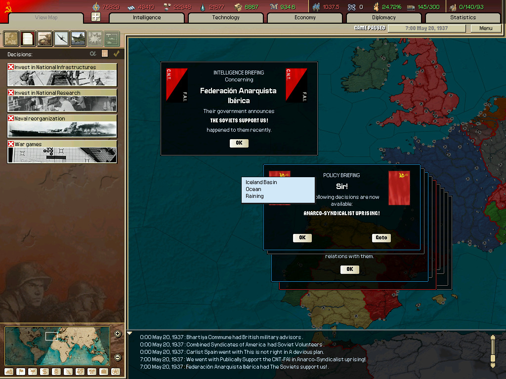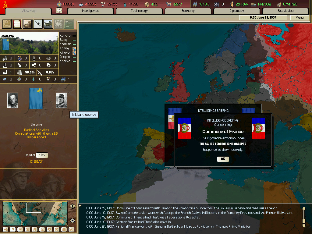 (이벤트 하나(소련으로 되는 이벤트 찍는거 놓침 그리고 군대 뜸.)