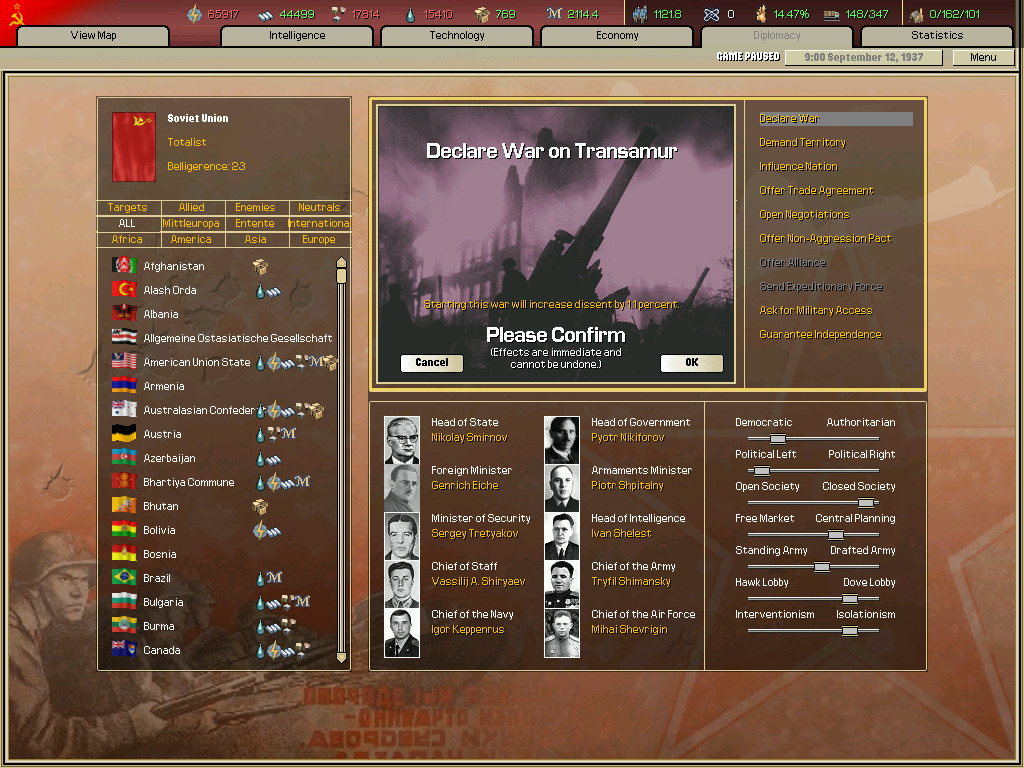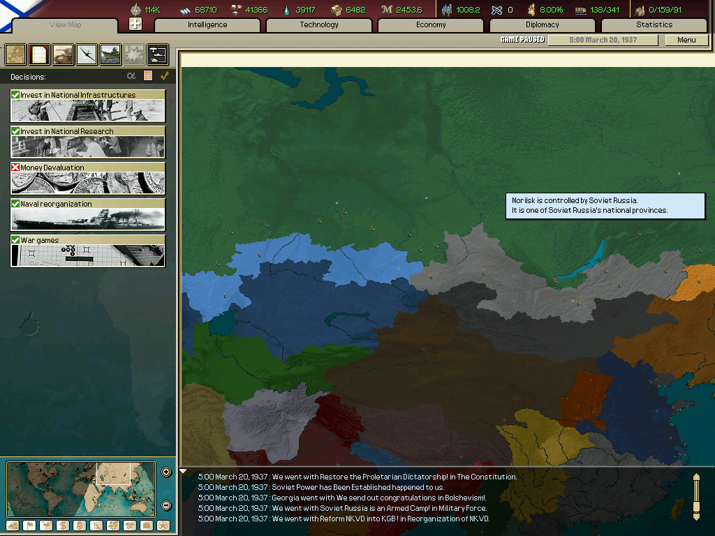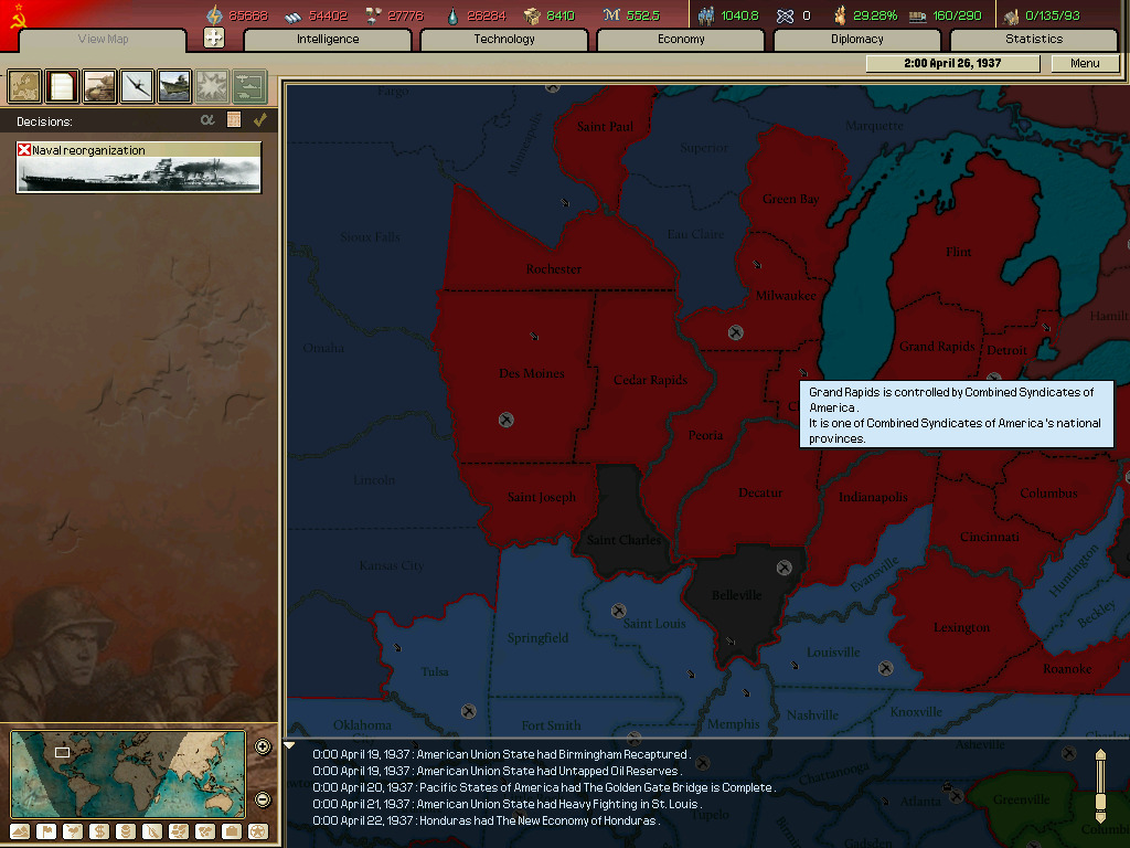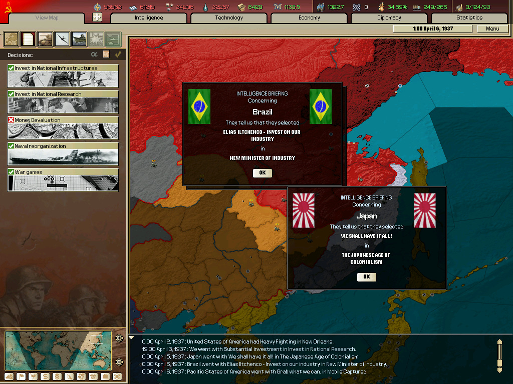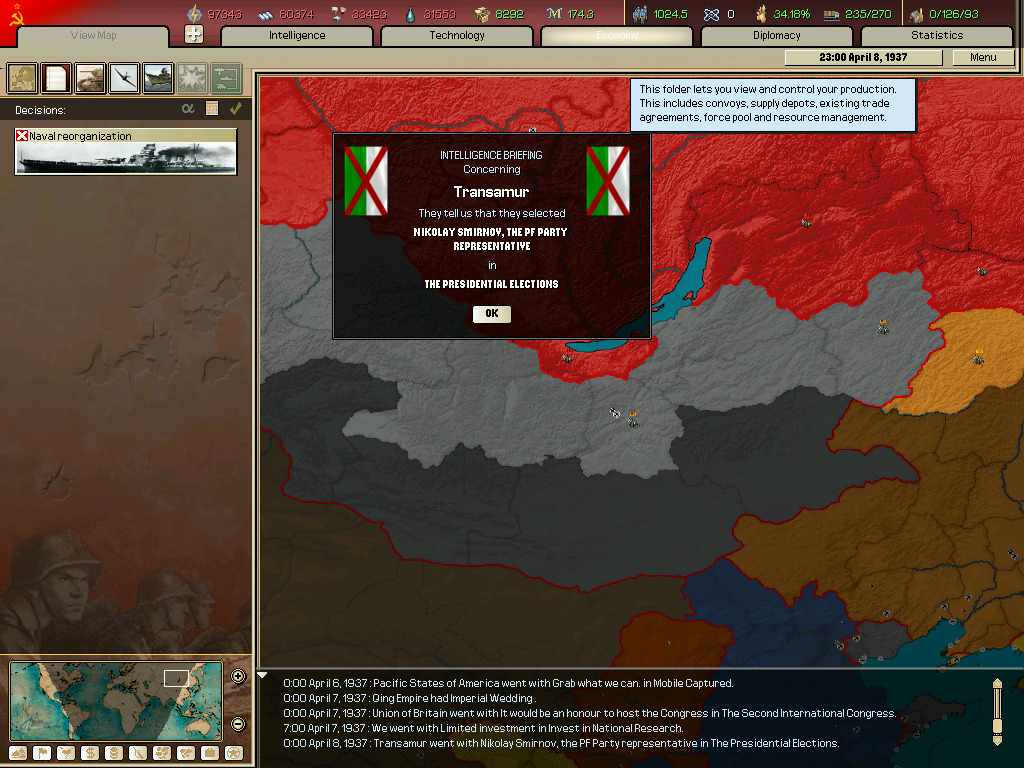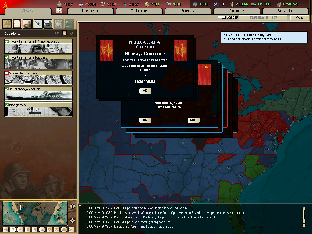 (이벤트 하나(소련으로 되는 이벤트 찍는거 놓침 그리고 군대 뜸.)