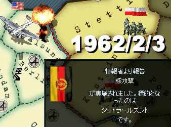 서방 국가들도 큰일이다. 동방 국가들과의 냉전에는 일단 승리했다고 말할 수 있을 것이다. 어쨌든 동쪽이 제멋대로 덜컹덜컹거리며 무너져갔으니까. 자본주의 사회의 승리라고 주먹을 치켜올릴 정도의 자격은 있을 것이다. 하지만, 제3제국의 그림자를 무서워하여 독일과의 전쟁의 발단을 만든 프랑스와 그 틈을 타서 핵병기를 우르르 발사한 아메리카 합중국은 어떻게 책임을 질 것인가. 덧붙여 이 플레이에 행해진 핵공격은 미-소 합계 41번. 중국공산당이 25발, 동독이 6발, 서독이 10발의 공격을 받았다. 하여튼 핵병기 사용의 도가 지나쳐버린 것은 문제다. 앞으로, 뭐든 갈등이 생기면 그때도 간단하게 써버리는 건 아닐까. 그 비난의 화살이 아메리카 합중국으로 향하고, 인과응보라고밖에 말할 수 없는 광경이 나타날지도 모른다.