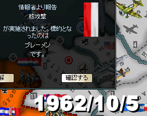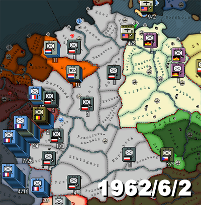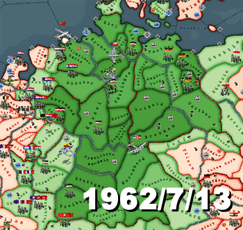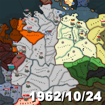 이대로 계속해도 독일은 아마 1964년까지 살아 남을 수는 있다고 생각한다. 어찌되었든 서방이 육지에서 진지하게 쳐들어오려고 하지를 않으니까. 하지만 지금 할 수 있는 일도 없고, 꾸역꾸역 계속하려니 게임이 너무 지나치게 느리다. 기회이지 않은가. 그런 이유로 1962년 10월 24일 시점에서 게임을 종료하기로 했다. 꼭 완주해야만 하는 것도 아니고, 이 이상은 이제 용서해주시길 바란다.