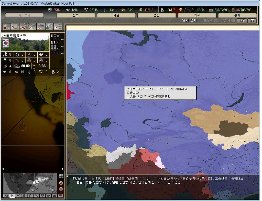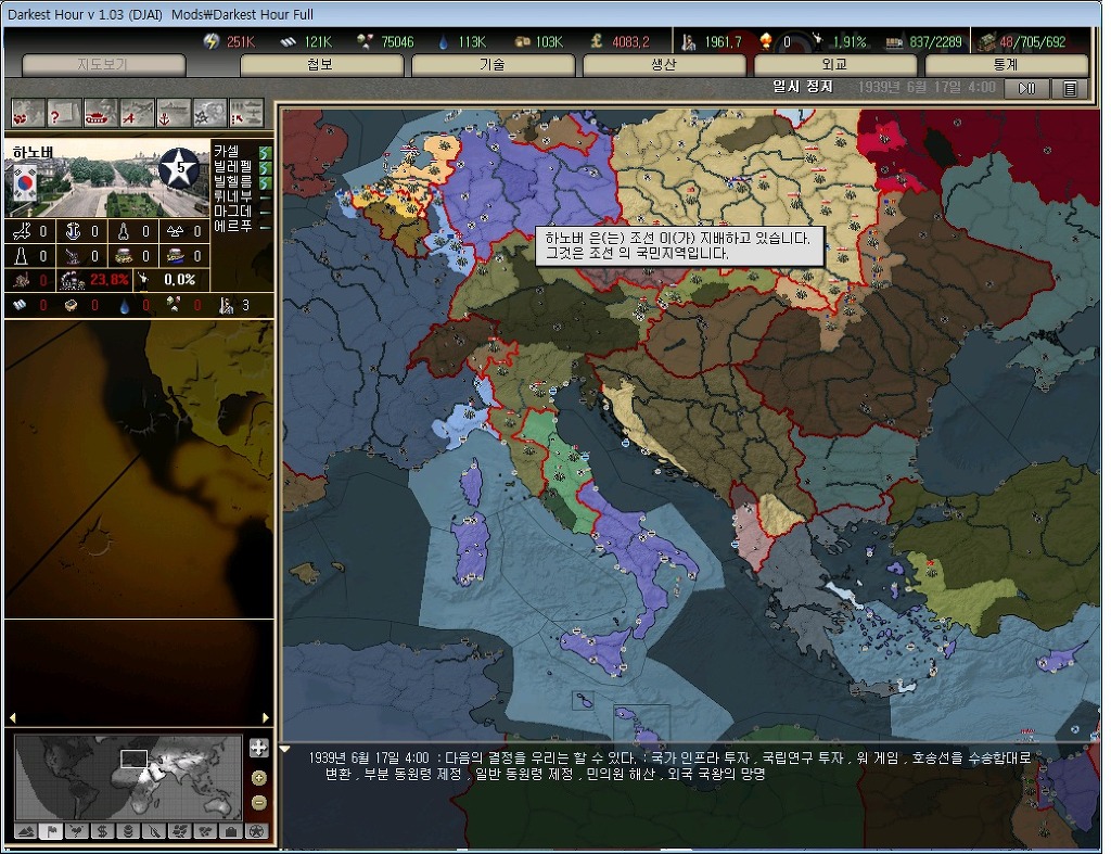 어째선지 독일 지역과 이탈리아, 지중해 섬들 일부까지 전부 조선의 국민지역