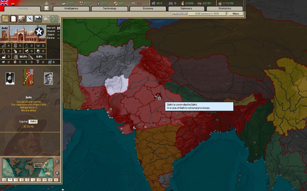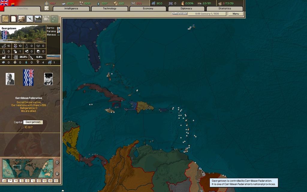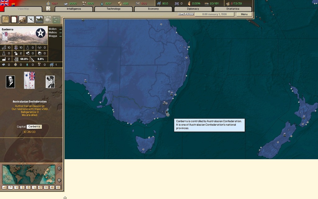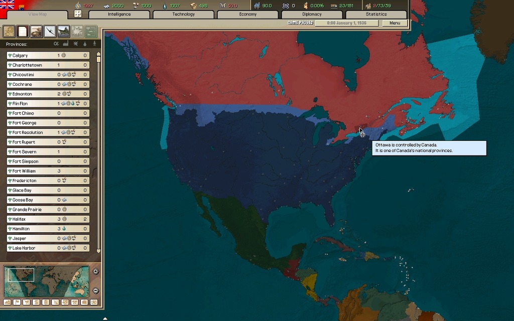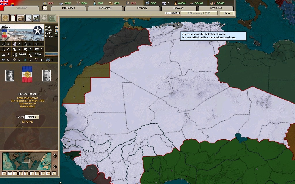 북아프리카를 호령하고 있지만 본토는 물론이요 다른 지역의 모든 해외식민지를 잃었으며, 밑으로는 중앙아프리카 식민지와 떠오르는 중동연맹이 위협하고 있다.