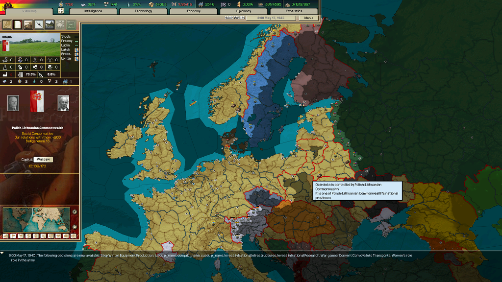 선전포고 직전에 폴란드-리투아니아에 쿠데타 일으켰는데 의외로 성공해서 동맹을 하나 줄였죠.
