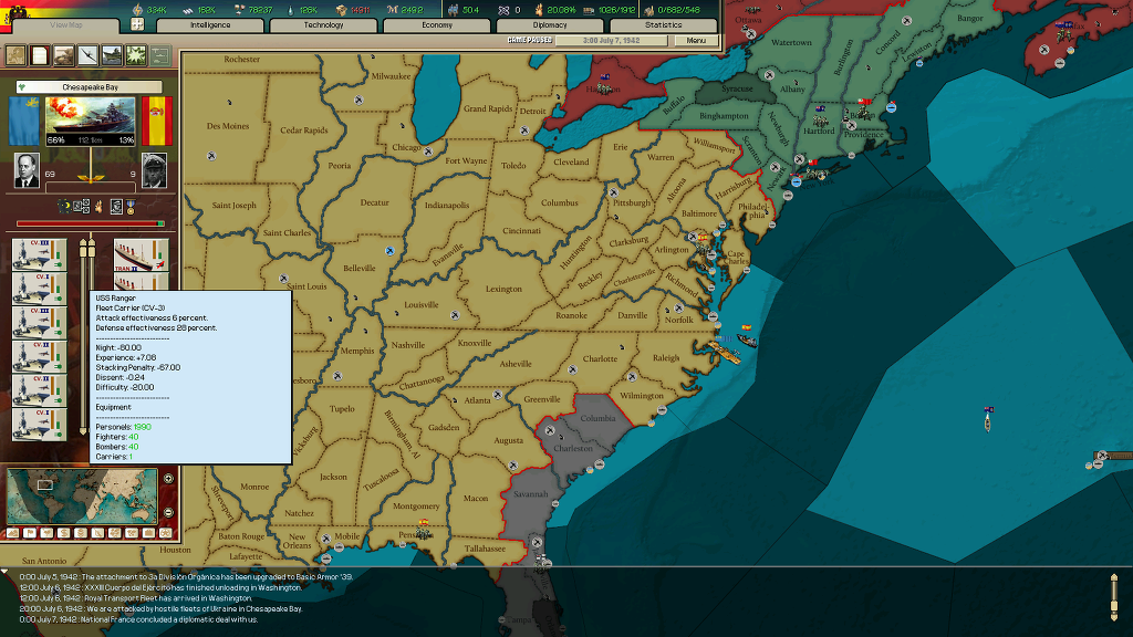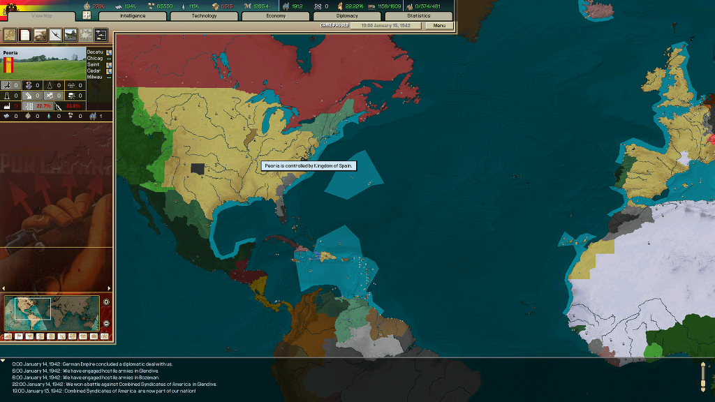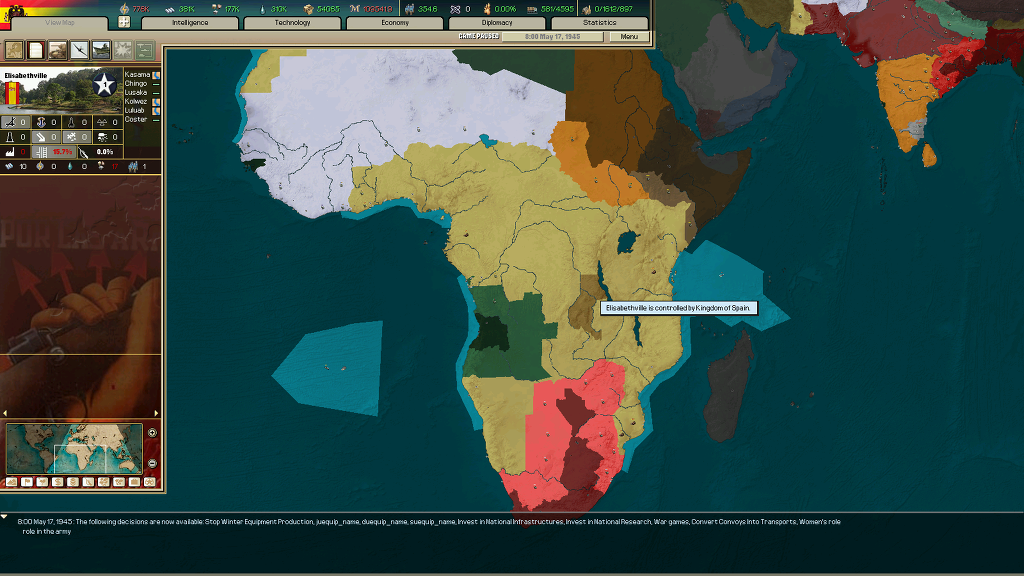 남은 독일 제국의 영토는 베트남과 라오스, 인도네시아와 남태평양 섬 몇개들 뿐입니다. 왕후 연맹이 스리랑카 찾는다고 협상국에 붙어서 인도 거치면 갈 수야 있겠지만 너무 멀어서 귀찮네요...