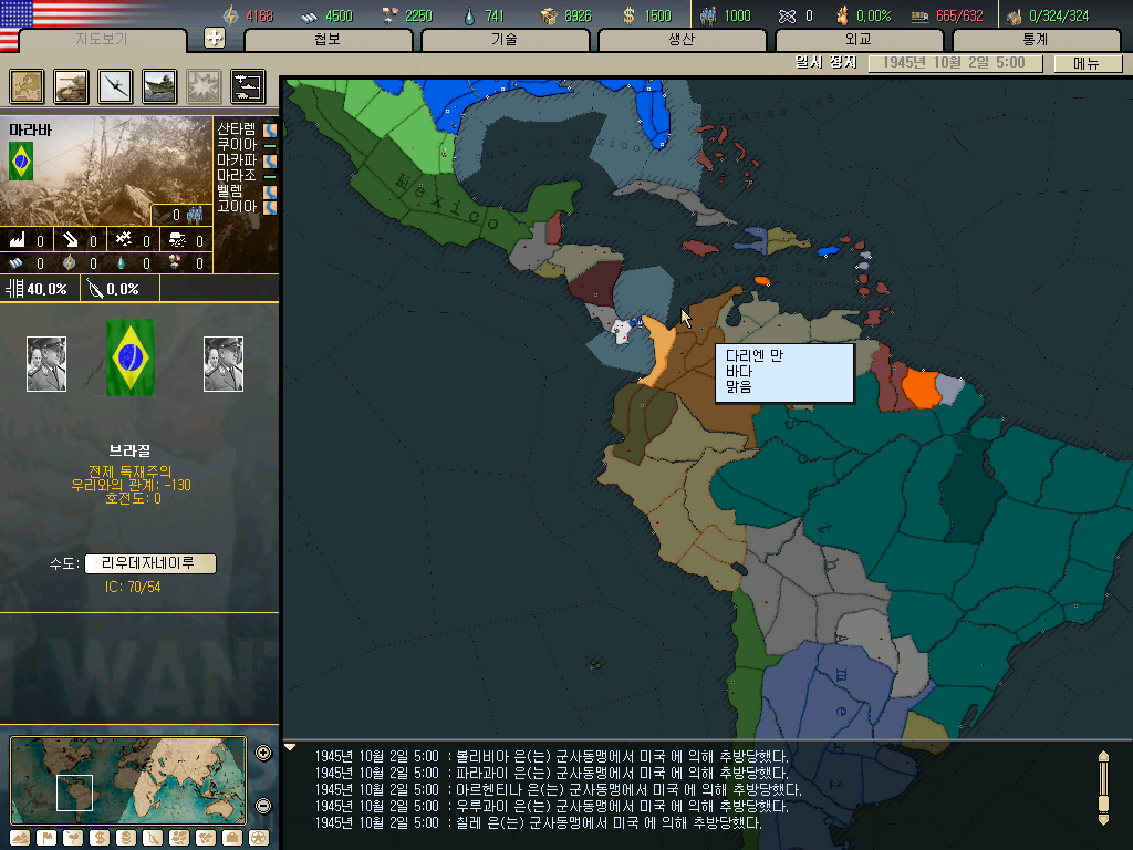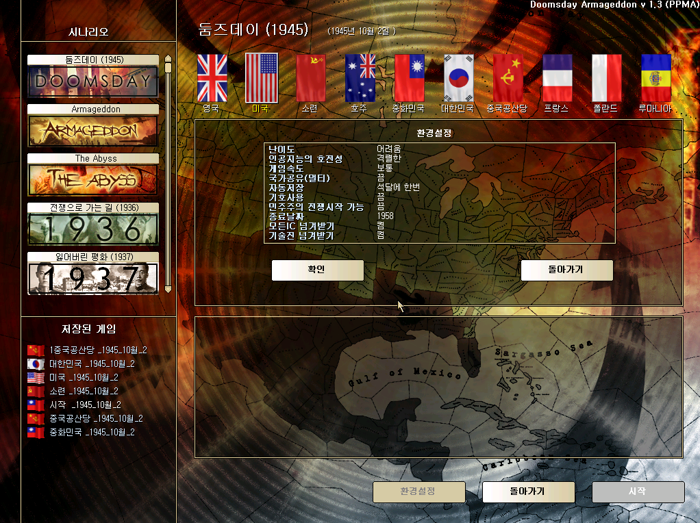 네트님의 '저편에서 불어오는 바람' 연대기가 완결되지 못한 것을 항상 안타깝게 생각하며 거기서 초기설정을 배워와서 시작하기 전에 영국과 남미의 공산화라는 설정을 위해서 acceptall치트를 사용했지만(능력부족으로 에디트로 하는건 포기) 게임중에는 사용하지 않을 예정입니다.