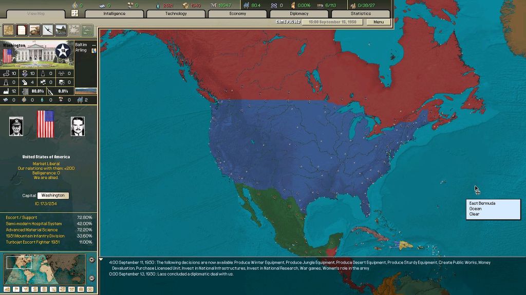 플레이어는 1936년~42년까지 미국으로 내전, 2차대전 승리하고