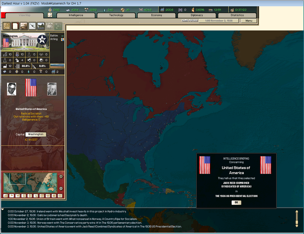 미국 정국은 불안했고,사상 초유의 4파전(공화당,민주당,아메리카 노동 연맹,아메리카 제일당)이 벌어지고 있었기 때문이다.