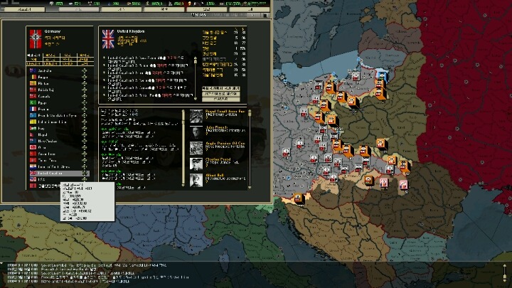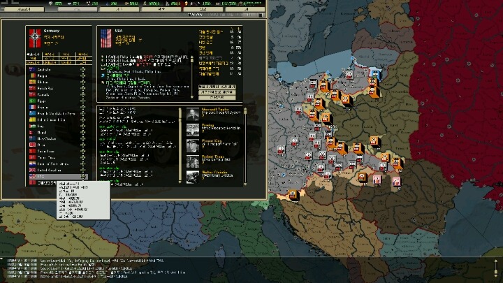 그리고 프랑스는 스샷이 없지만 공업력100수준에 그냥 마이너 수준으로 안습하네요 ㅠㅠ 자원에 테크진까지 상향시켰는데 공업력이 동정을 절로 불러 일으키네요. 그래도 제 딴에는 자랑좀 할려는지 보병사단 영국보다 많다고 좋아라 하는데 전부다 그냥 사단의 모습을 취한 연대따위이기에 속으시면 안됩니다.