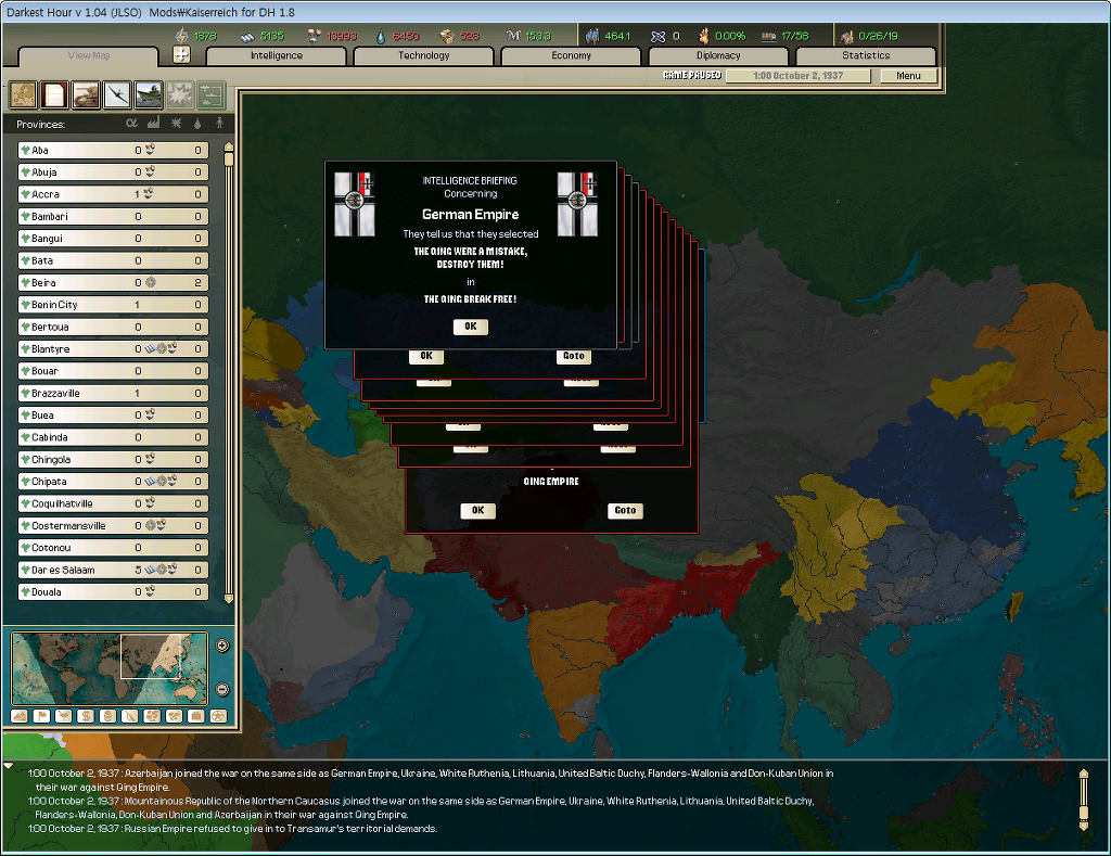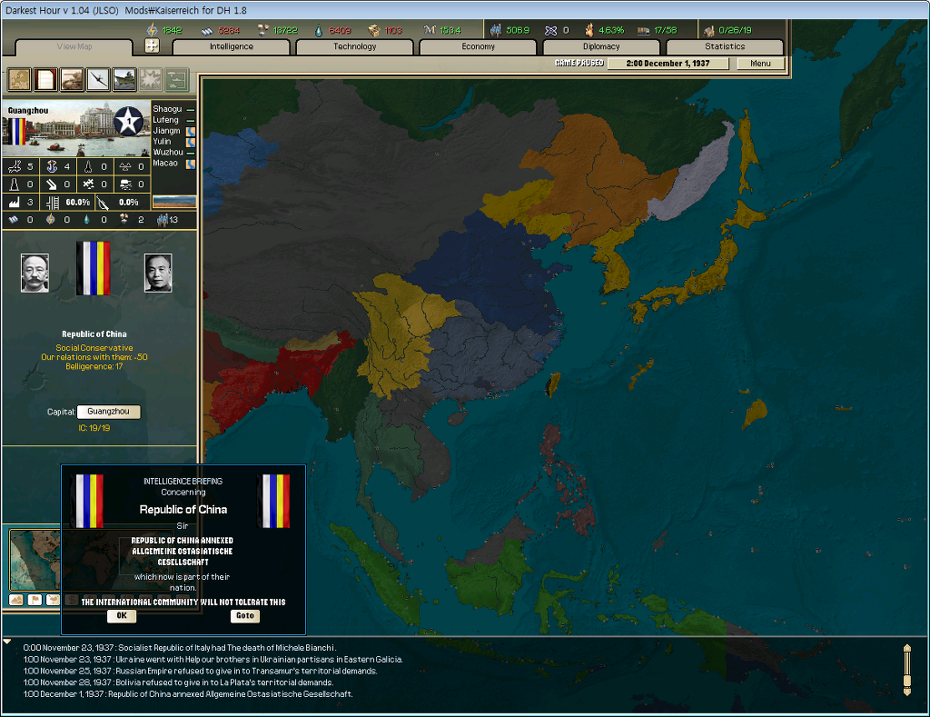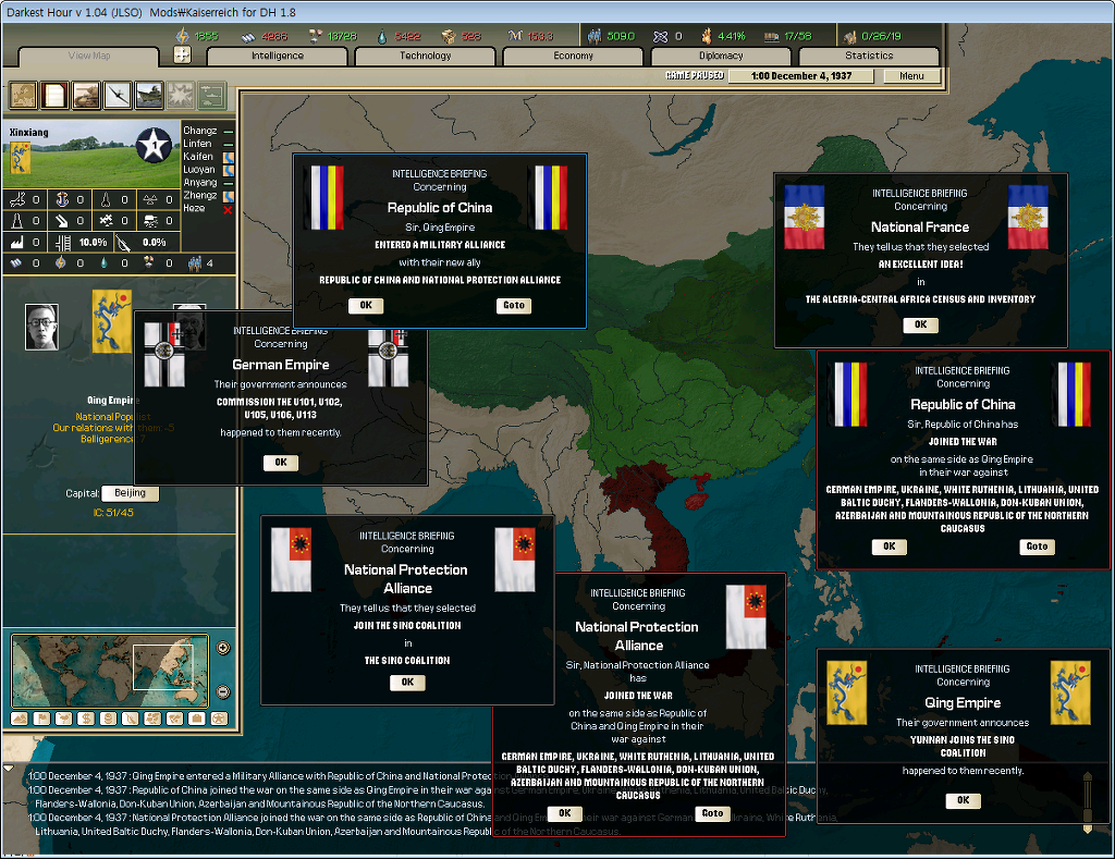 그리고 청,중화민국,호국연합이 뭉쳐 독일에 대항하는 중화 연합군을 형성한다.