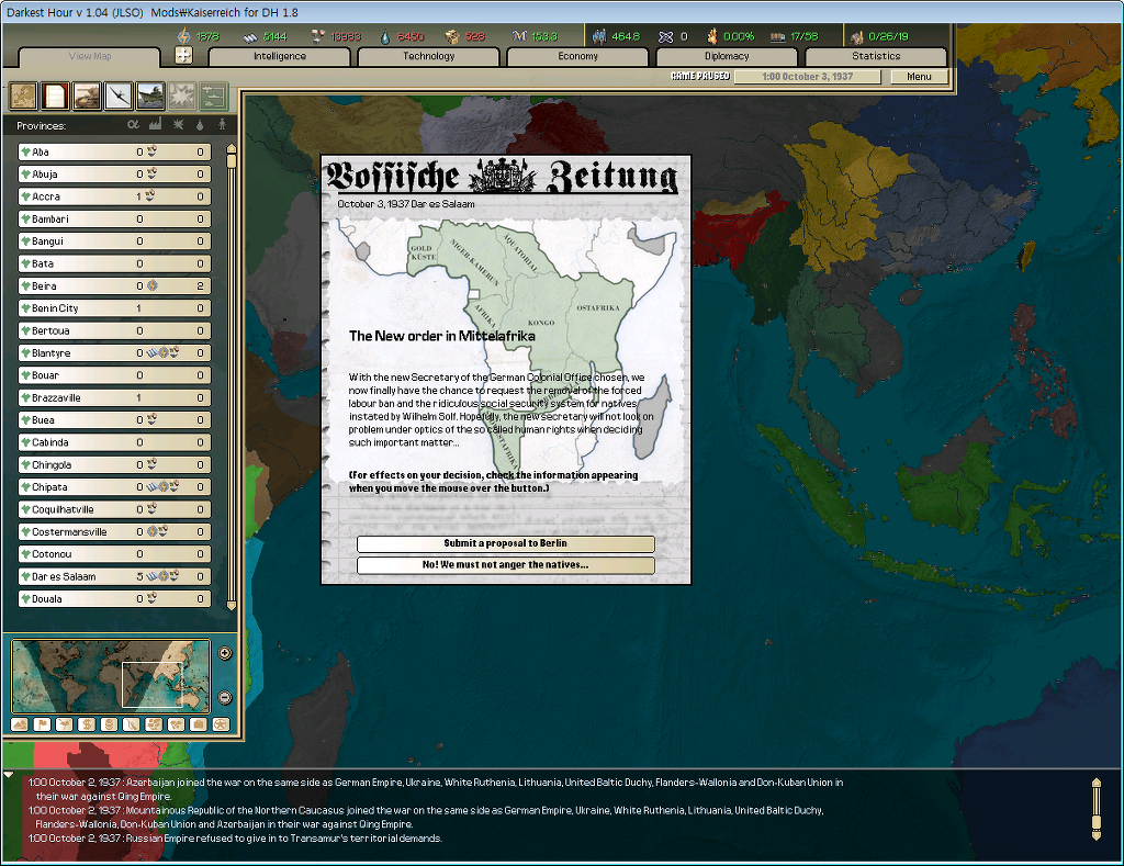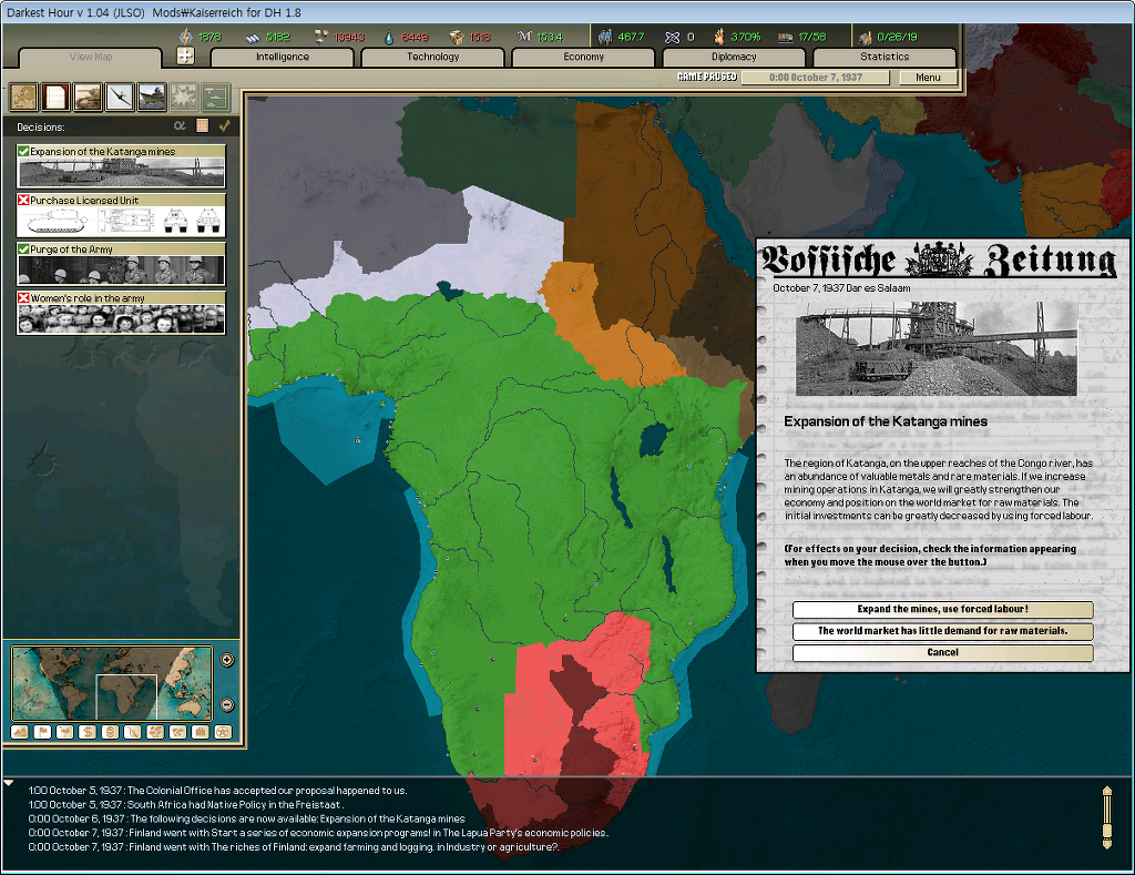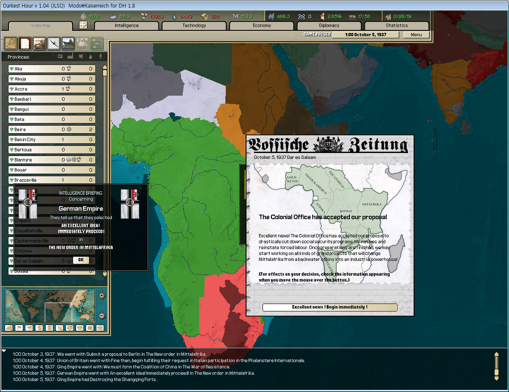 이제 괴링은 강력한 아프리카 건설이라는 명목하에 움직이기 시작한다.