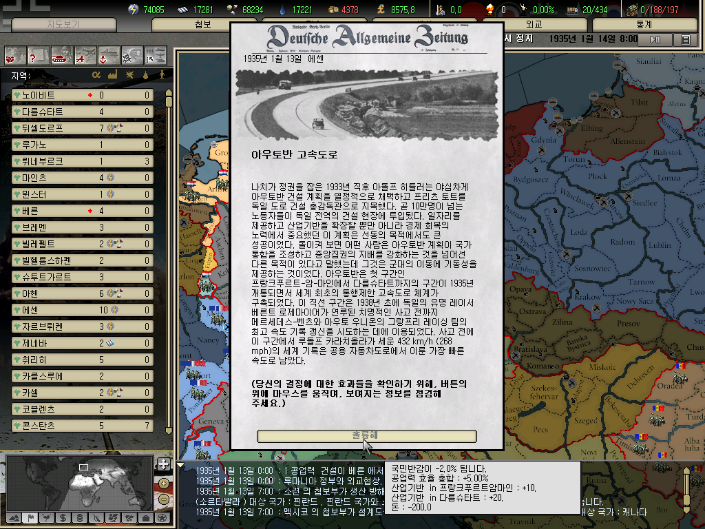 명분은 [독일민주공화국과 그 주변의 국가를 쳐야하니 너희가 만든 그 고속도로를 내놓아라]였고 이에 우리는 준비안됀 총동원령을 내려야 했다.