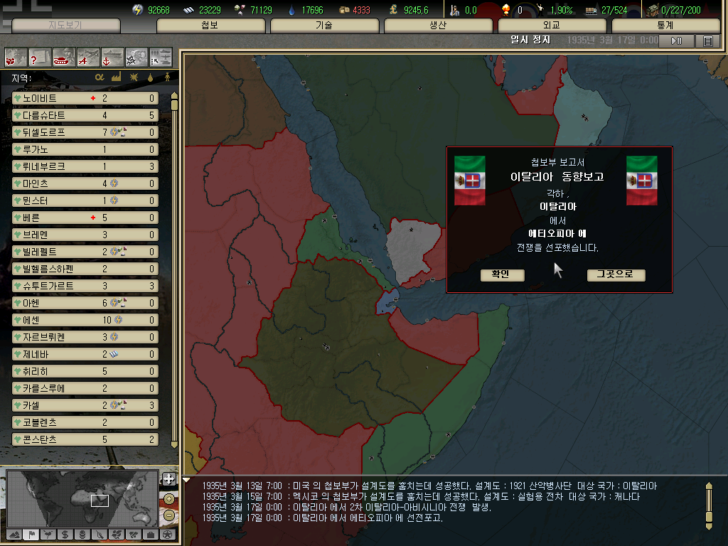 이탈리아가 유고슬라비아와의 전쟁을 펼치는 동안 에티오피아는 이탈리아에 전쟁을 선포하며 소말릴란드, 에리트리아를 되찾을 시기라고 말했다.