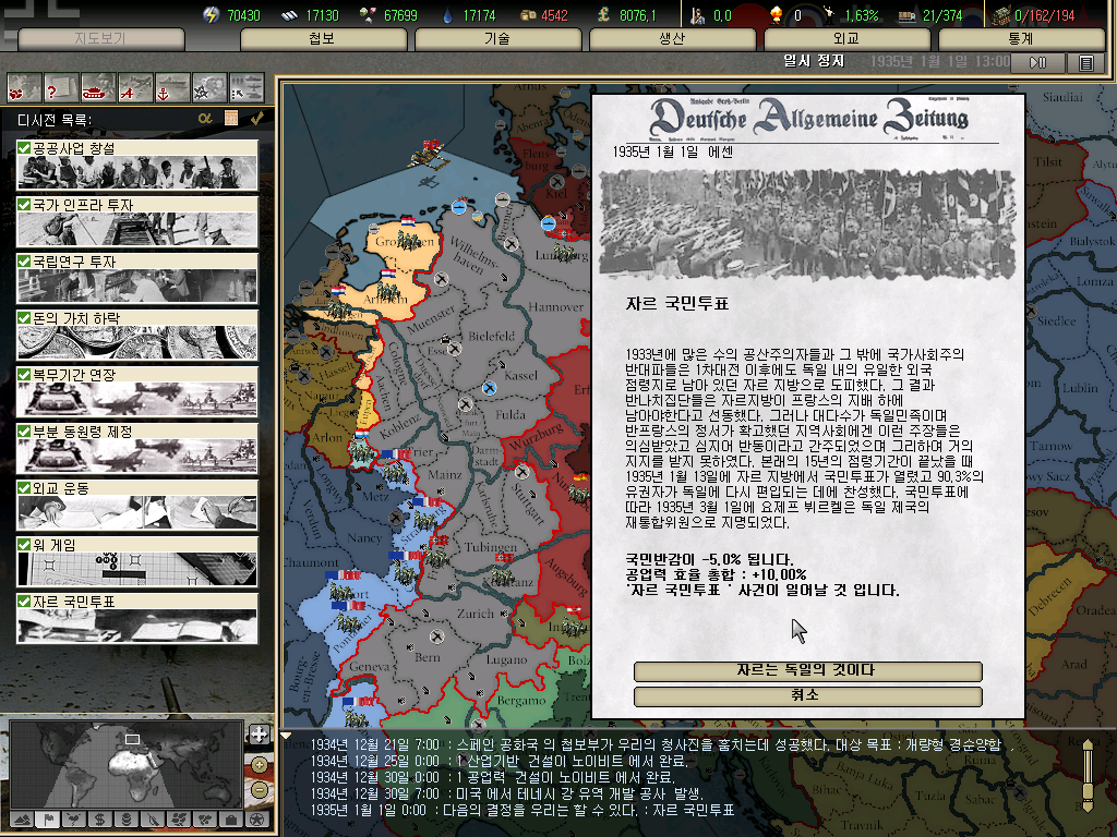 1935년 1월 1일 신년이 시작되는 날 자르에선 국민투표가 일어났고 그들 역시 우리에게 합병된다.