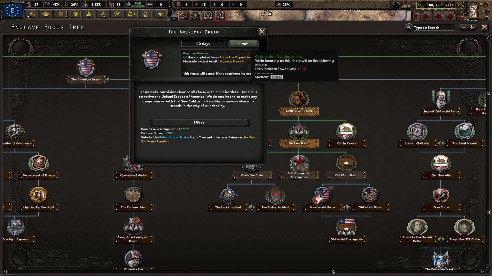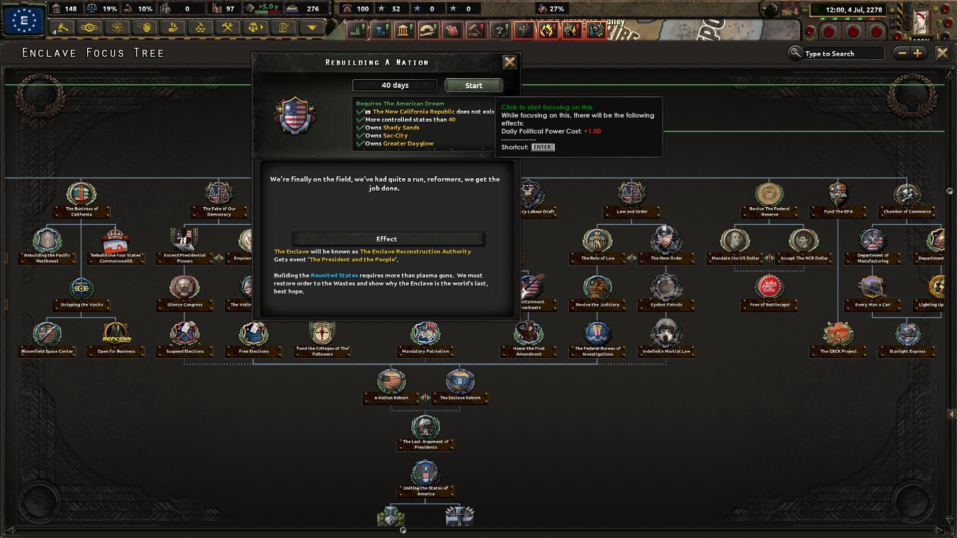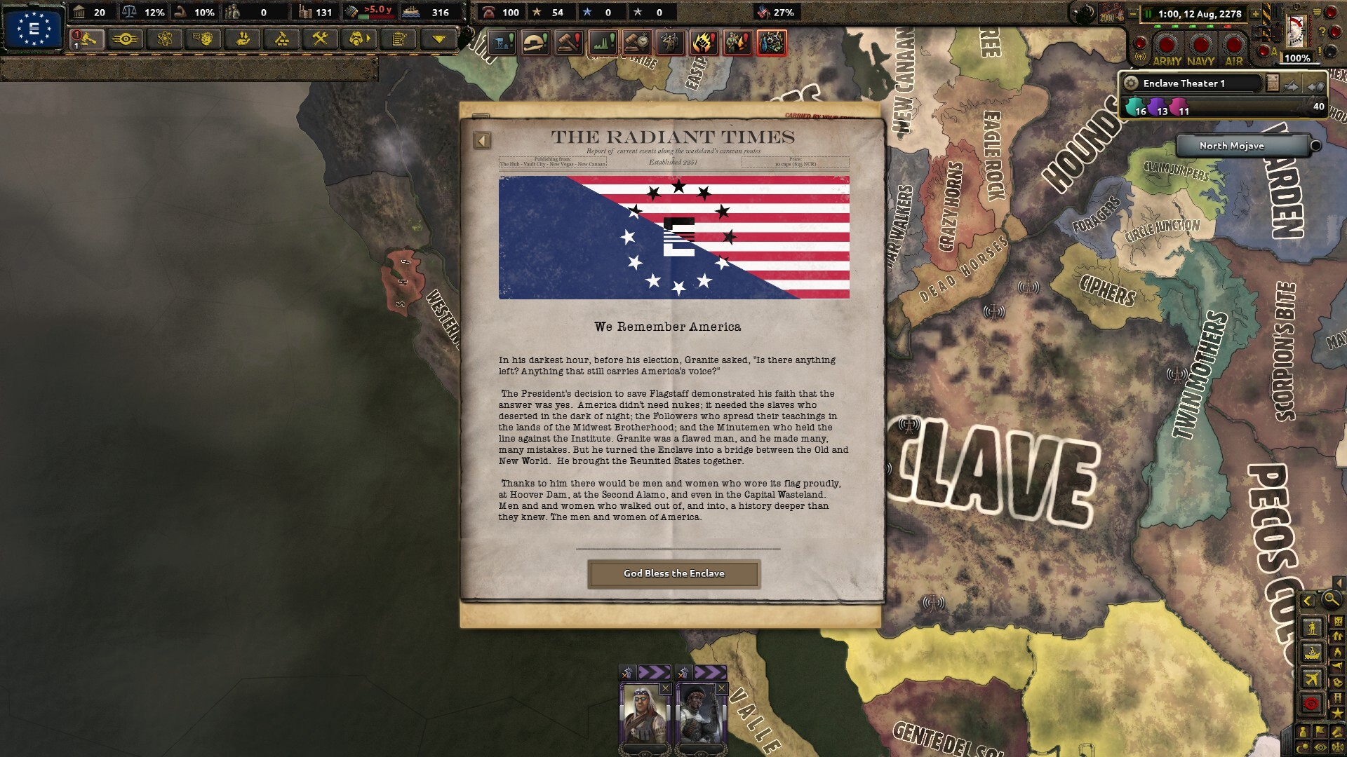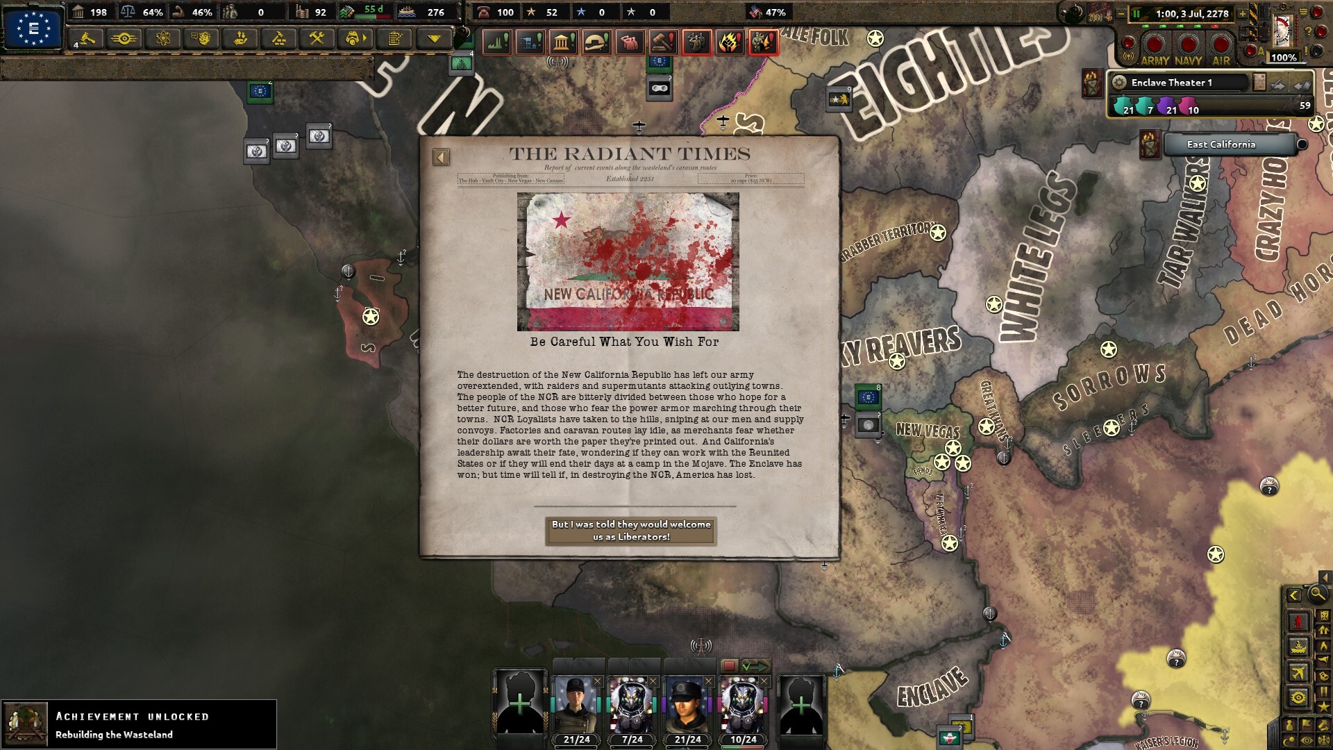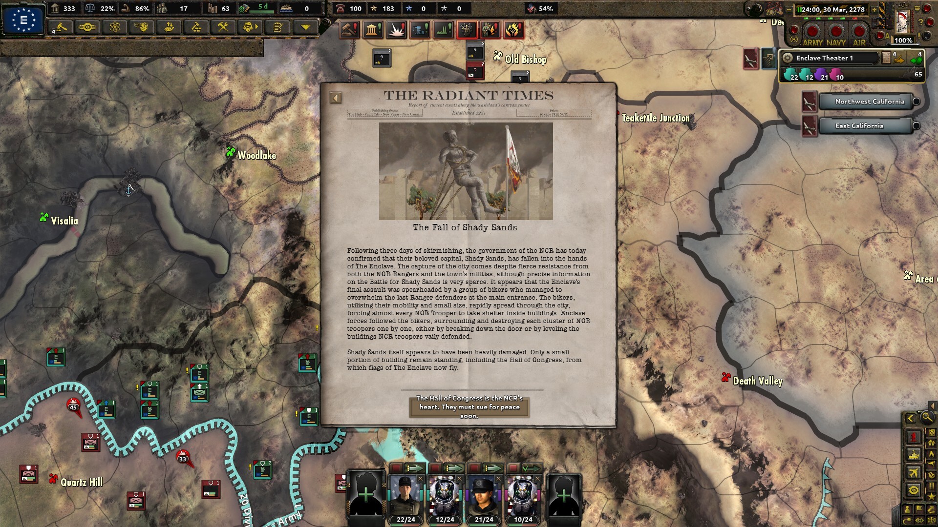 이윽고 엔클레이브는 캘리포니아 공화국을 자칭하던 괴뢰집단을 정벌하였다.