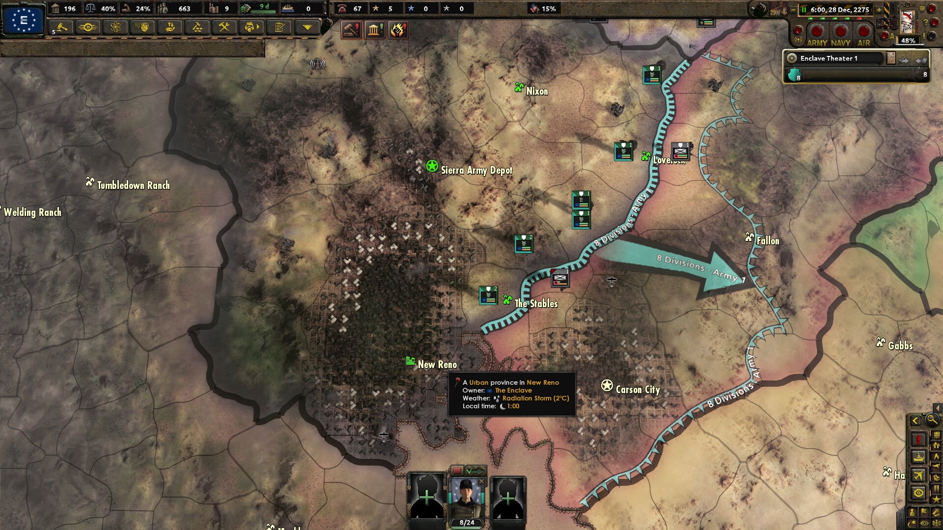 네바다 주의 반란군들을 섬멸하고 뉴 레노를 수도한 엔클레이브는 캘리포니아 공화국의 후신을 자처하는 괴뢰집단을 전복할 준비를 한다.