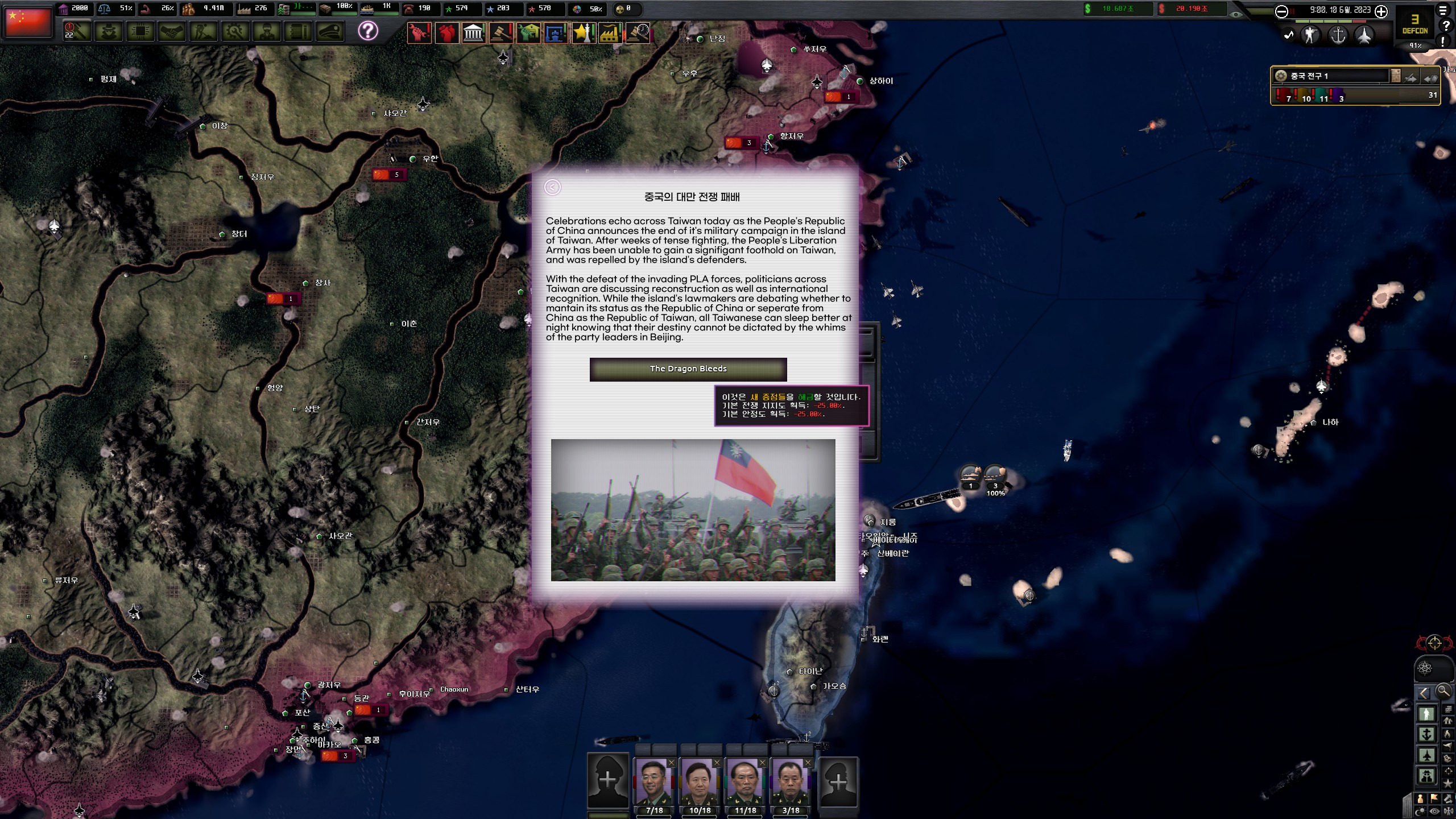 현실이나 게임상에서도 대만 침공 껌이다만 중국의 재미는 대만꼴박을 해야 본격적으로 시작이니