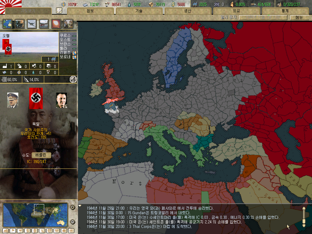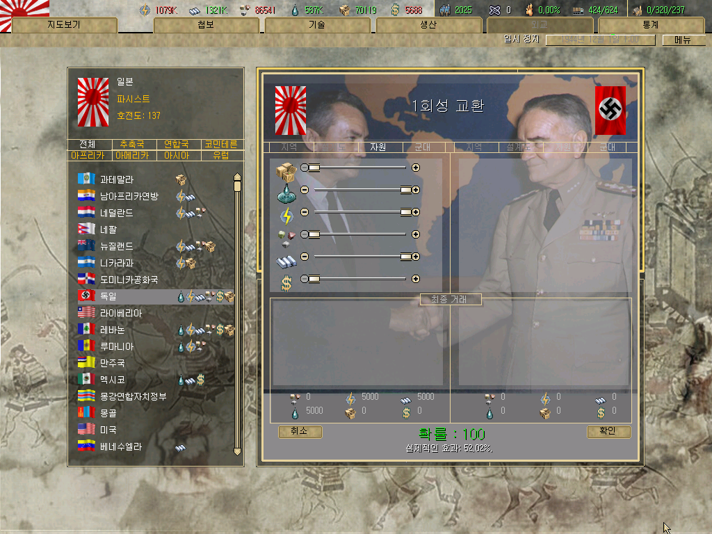 평화협정으로 괴뢰국 성사되는 순간 게임이 계속 튕겨서 어쩔수 없이 전체 점령 -> 합병 -> 괴뢰국...