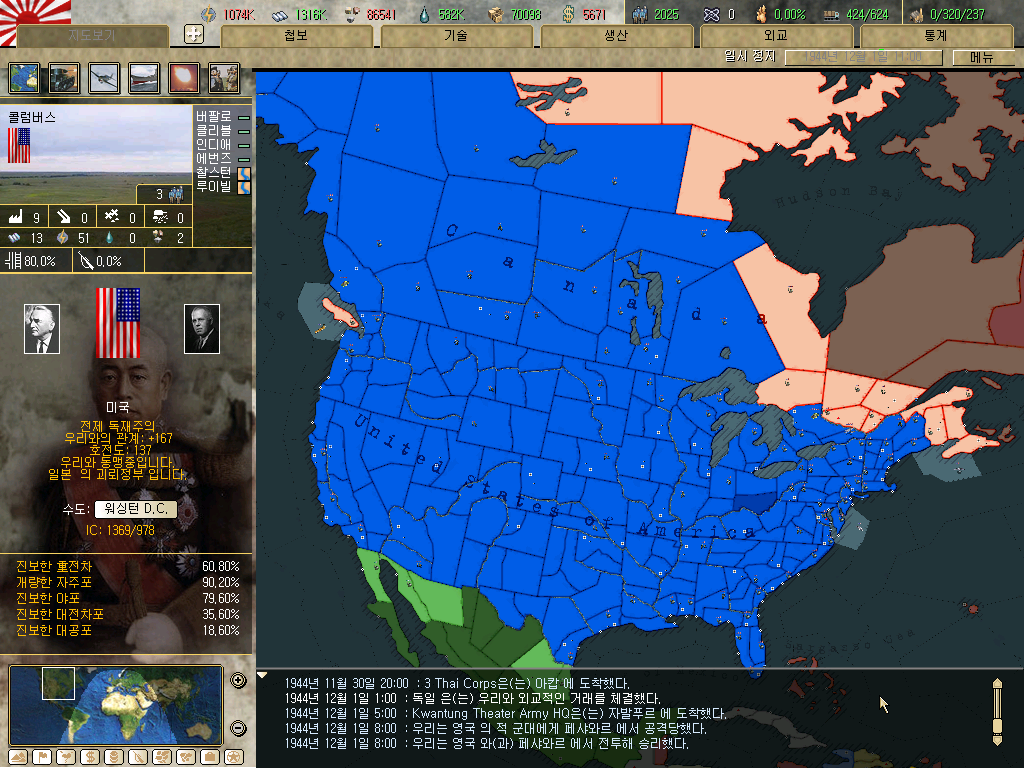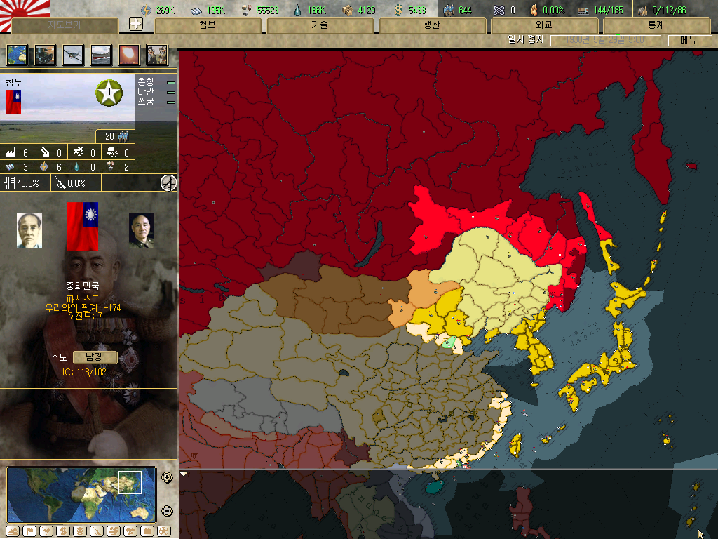미국을 괴뢰국 만든 것 까지는 좋은데 그 사이 장총통의 중화민국이 꽤 버겁게 크더군요...(39년에 합병했지만)