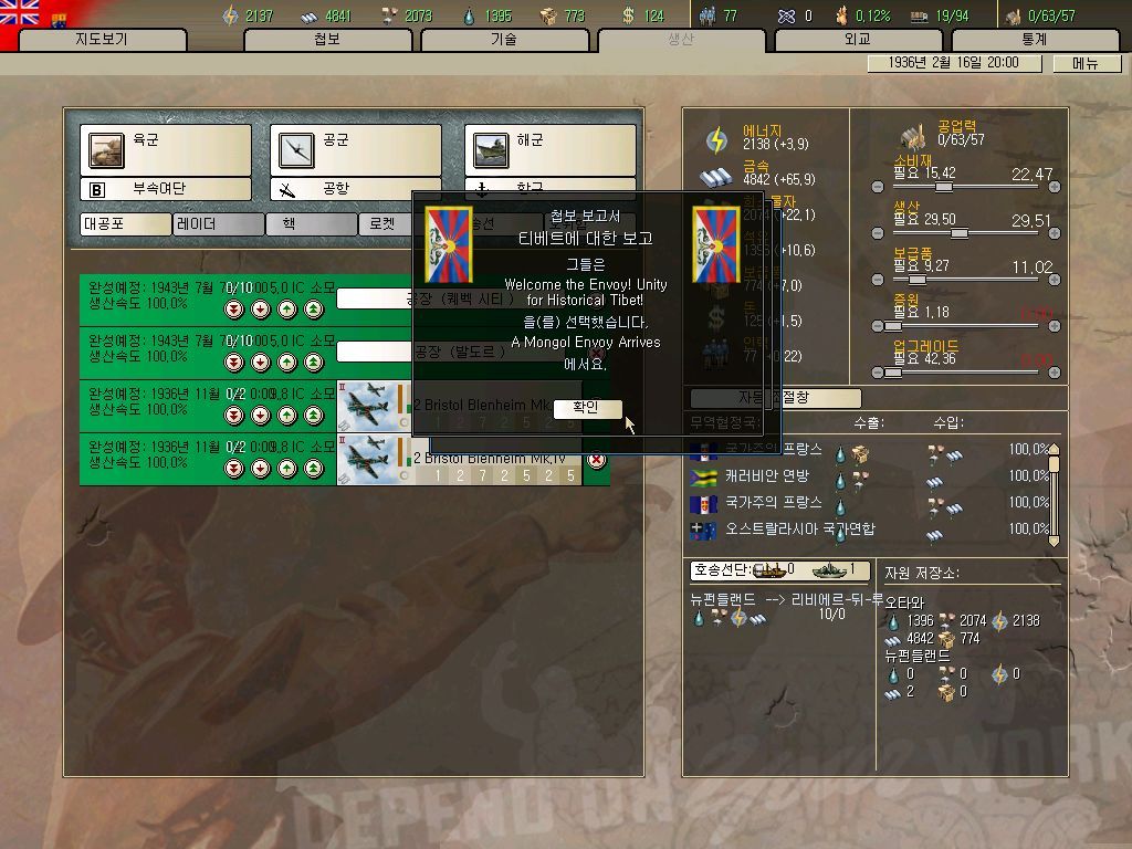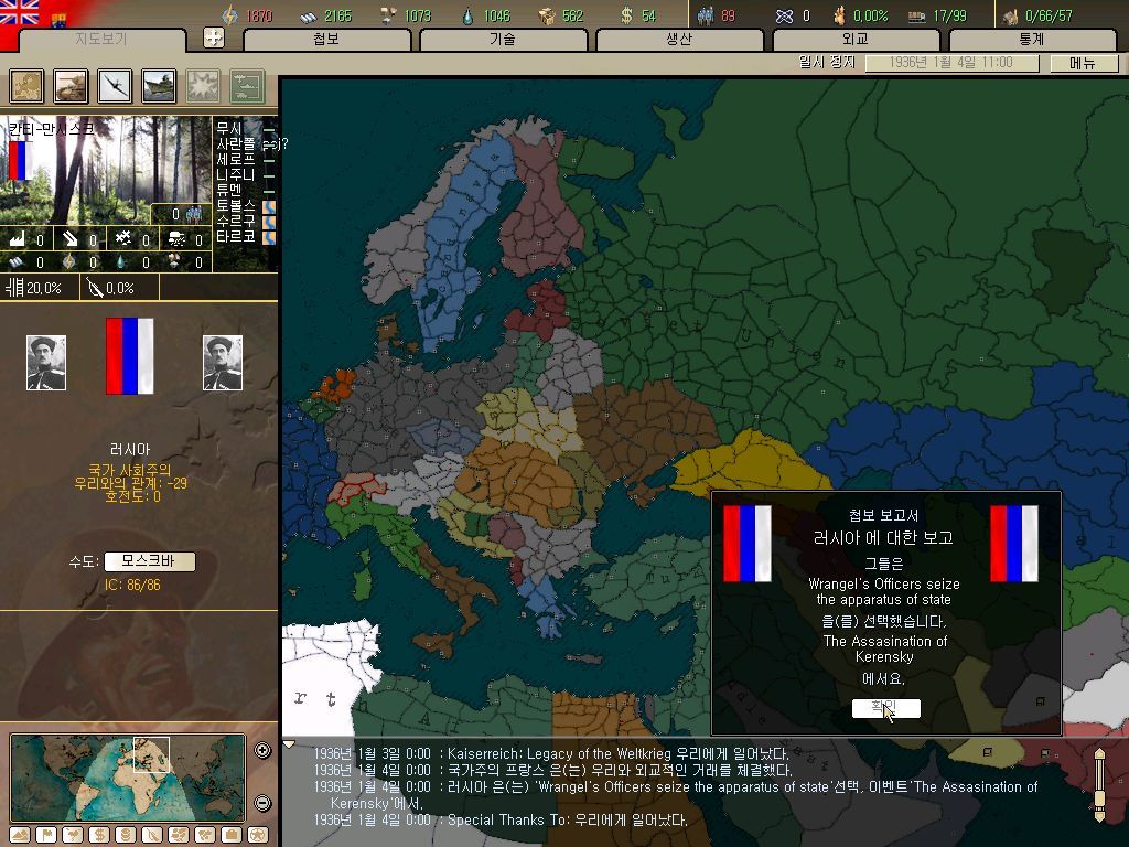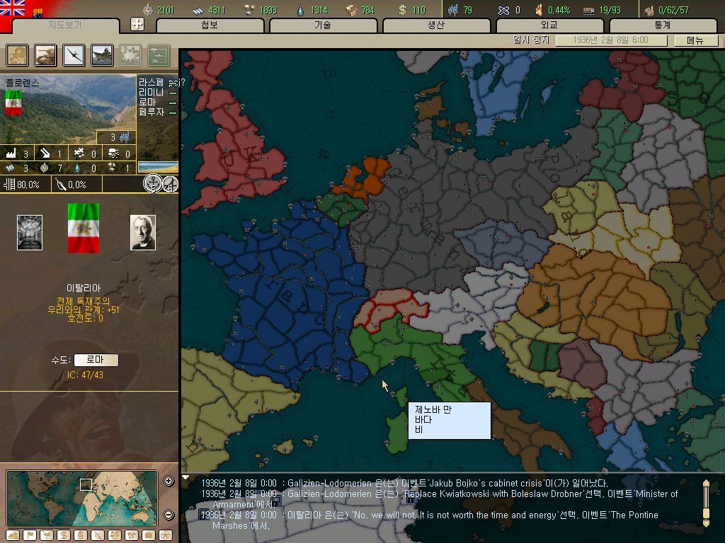 한편, 아시아에서는 몽골과 티베트가 군사동맹을 맺었고, 북이탈리아의 통치자 교황 비오 11세가 승하했다. 이탈리아는 지난 대전의 패배로 인해 나라가 분열되어 북부는 교황청과 군소 군주들의 동맹이 이루어졌고, 남부에서는 노동조합의 승리로 공산주의 성향의 시칠리아 공화국이 수립되어 프랑스와 동맹을 맺고 북이탈리아를 노리고 있는 형국이었다.