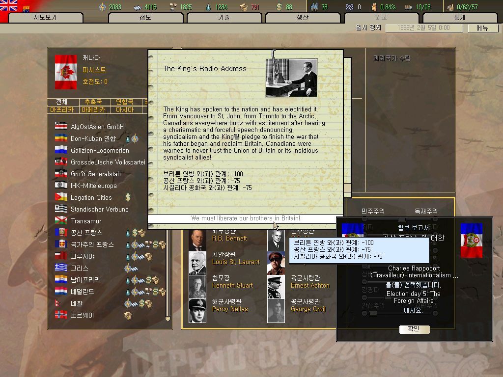 아직 공식적으로 브리튼 연방과 캐나다 사이에서는 총알 한 방 오고가지 않고 있었지만, 이미 물 밑에서 심리전이 시작되고 있는 형국이었다...