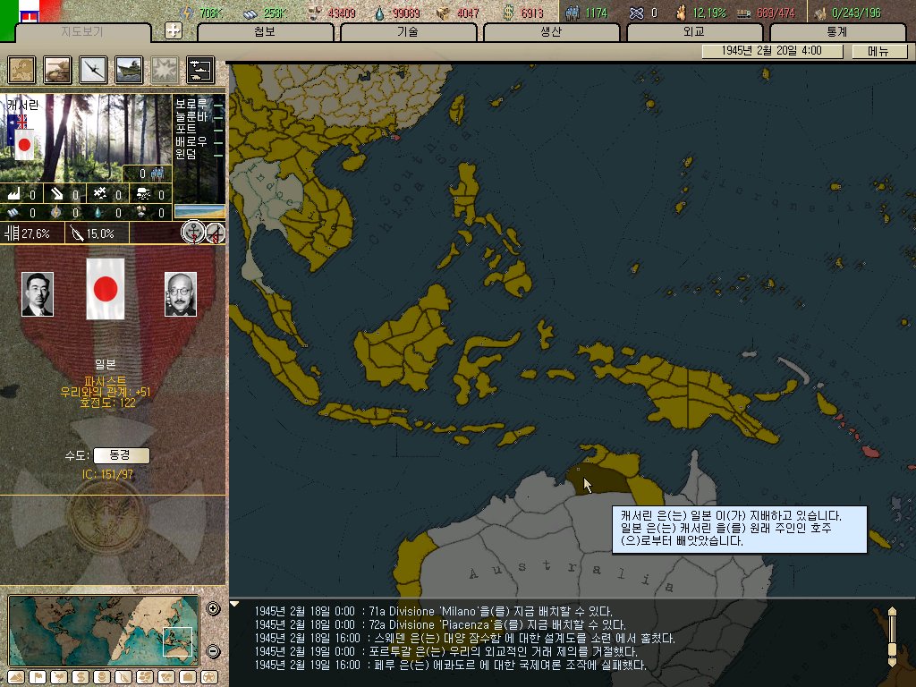 수차례에 걸친 독일의 동맹요청을 거절하시고 소련군의 쓰나미에 힘입어 독일을 뻑치기한 결과