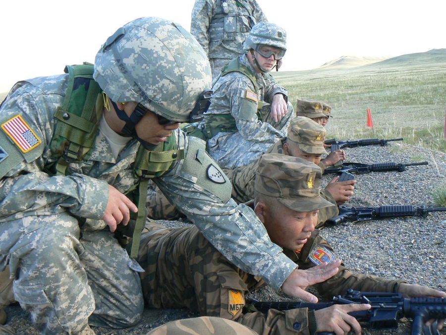 몽골은 1996년부터 재난 구호 목적을 내걸고 미군과 합동 군사훈련을 실시하고 있으며 자국 내에 평화 유지군(PKO) 훈련 센터를 설치 하여 미군이 상시 주둔 중이며, 또한 몽골군은 코소보, 사하라 서부, 콩고, 수단, 시에라리온 등에서 평화 유진 군 활동을 하고 있습니다,