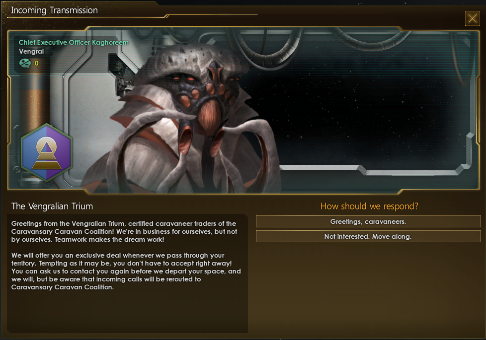 여튼간에 자 시작하죠, 오늘은 메가코프의 새로운 기능인 대상들(Caravanners)에 대해서 설명할 겁니다.
