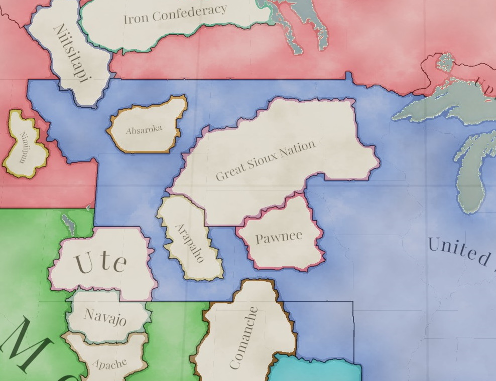 그럼에도 불구하고 북미 3개국의 거대한 국경을 유지하기 위해 앞에서 얘기했던 구상안을 수정해야 했고, 결과적으로 더 많은 작업을 해야 했음. 원래라면 캐나다의 영토여야 할 곳을 미국이 식민지로 만들거나, 멕시코가 미네소타를 식민지로 만들 수 있는 방법을 많이 만들고 싶지 않았기 때문임. 이 과정에서 세 개의 불 평의회(Council of Three Fires, 18세기 후반~19세기 초 오대호 연안에 정착한 아메리카 원주민 부족들의 부족연합)를 구현하지 못했고, 이를 다시 집어넣고 싶긴 하지만, 그것은 앞서 얘기했듯이 디자인에 대한 고려사항과 한계에 맞는 디자인을 만들어내야 가능한 일임.