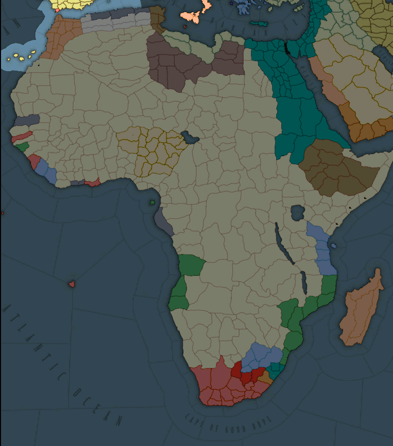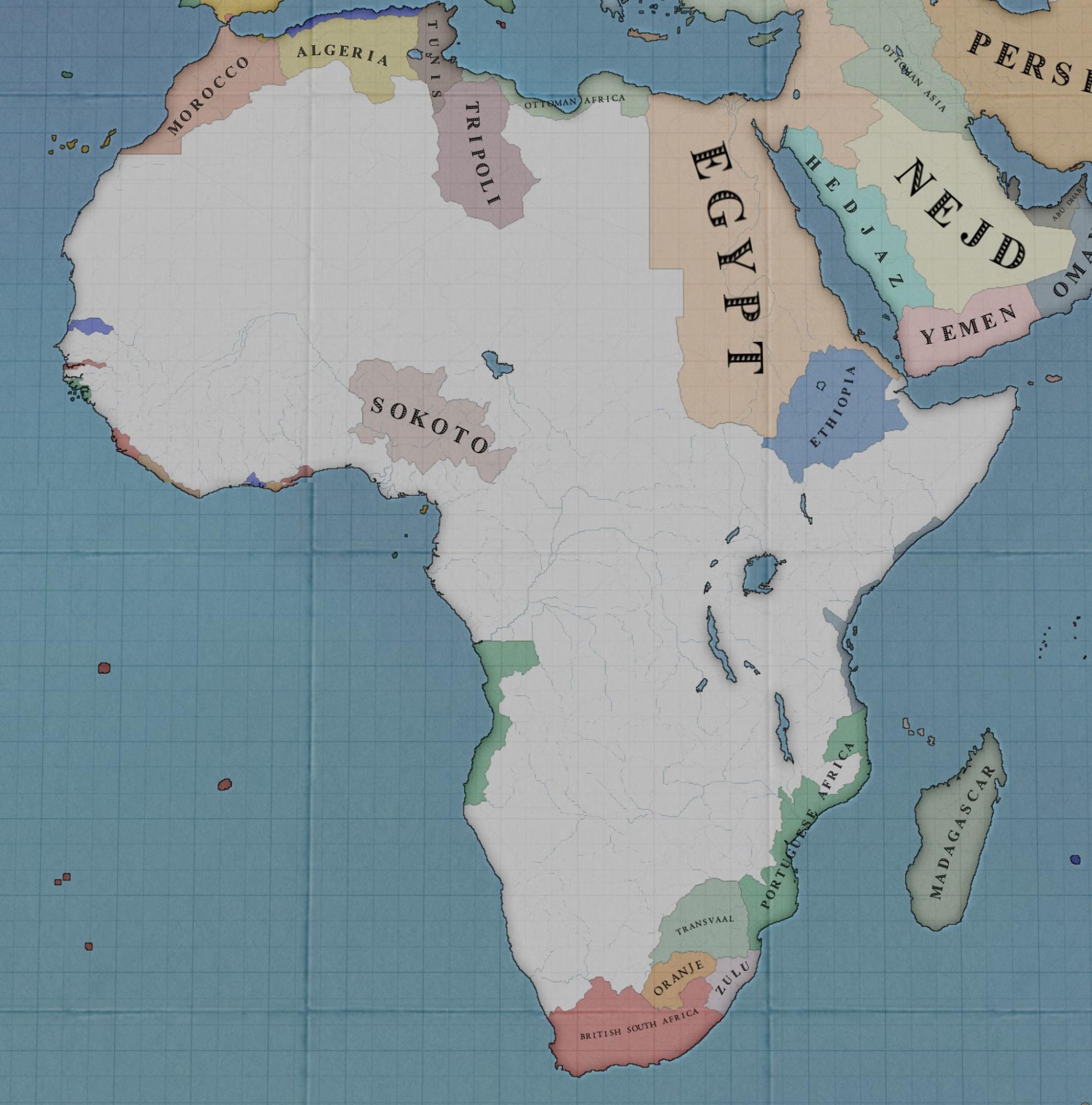 빅혁에서 아프리카의 대부분은 강대국들이 식민지로 삼을 수 있는 공백지였음. 그 지역들에도 팝이 존재하긴 하지만 아무것도 하지 않음. 소코토와 같이 몇몇 국가들이 존재하긴 했지만 이들은 어느 무엇도 나타내지 않음. 스스로 행동하는 것은 전혀 없고, 강대국들의 식민지 확장이 시작되면 곧장 식민지로 전락하는데다 독립을 지키기 위해 아무런 행동도 취하지 않음.